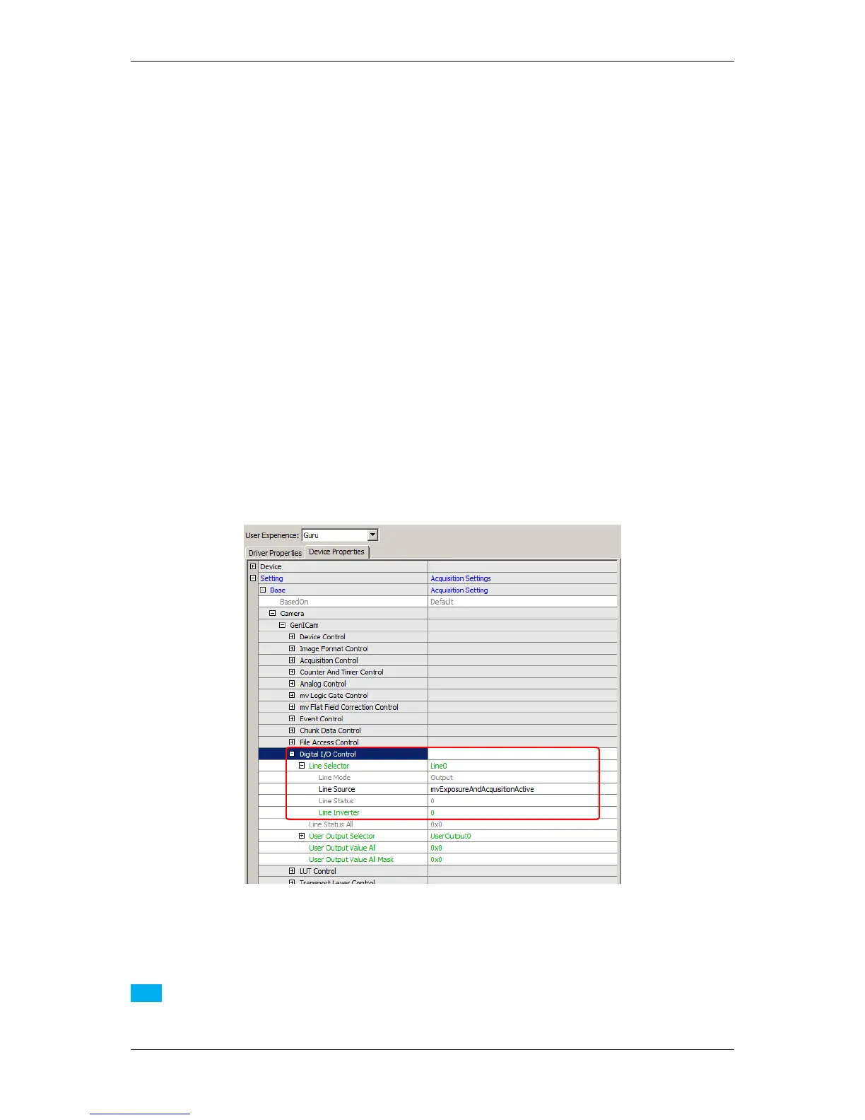 Figure 1: Setting the "Line Source" to "mvExposureAndAcquisitionActive"