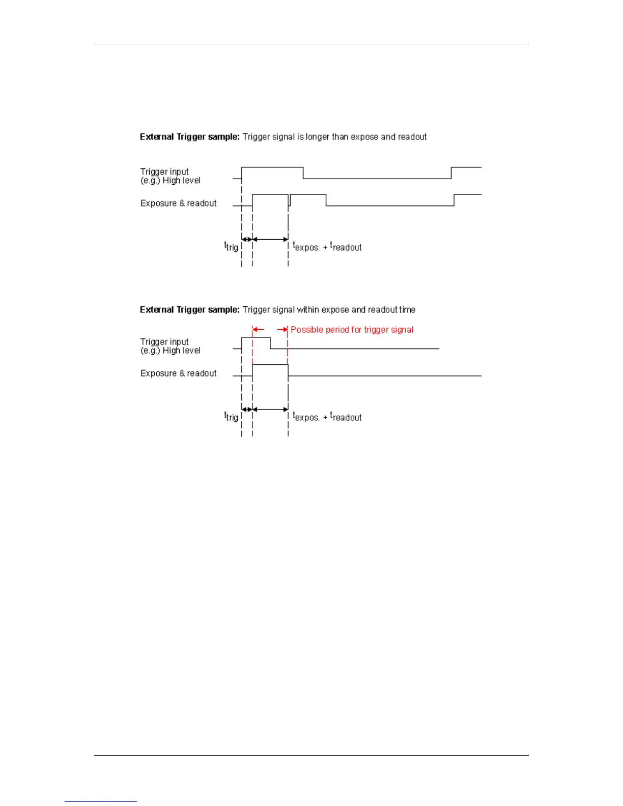 the trigger signal is still available, the sensor will start to expose and readout the next image (see figure 12, upper