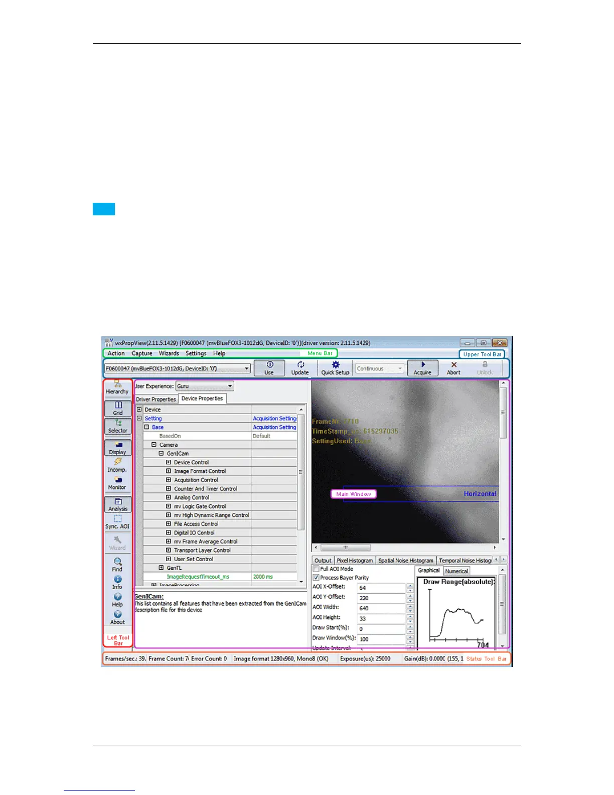 Following screenshots are representative and where made using a mvBlueFOX3 camera as the capturing