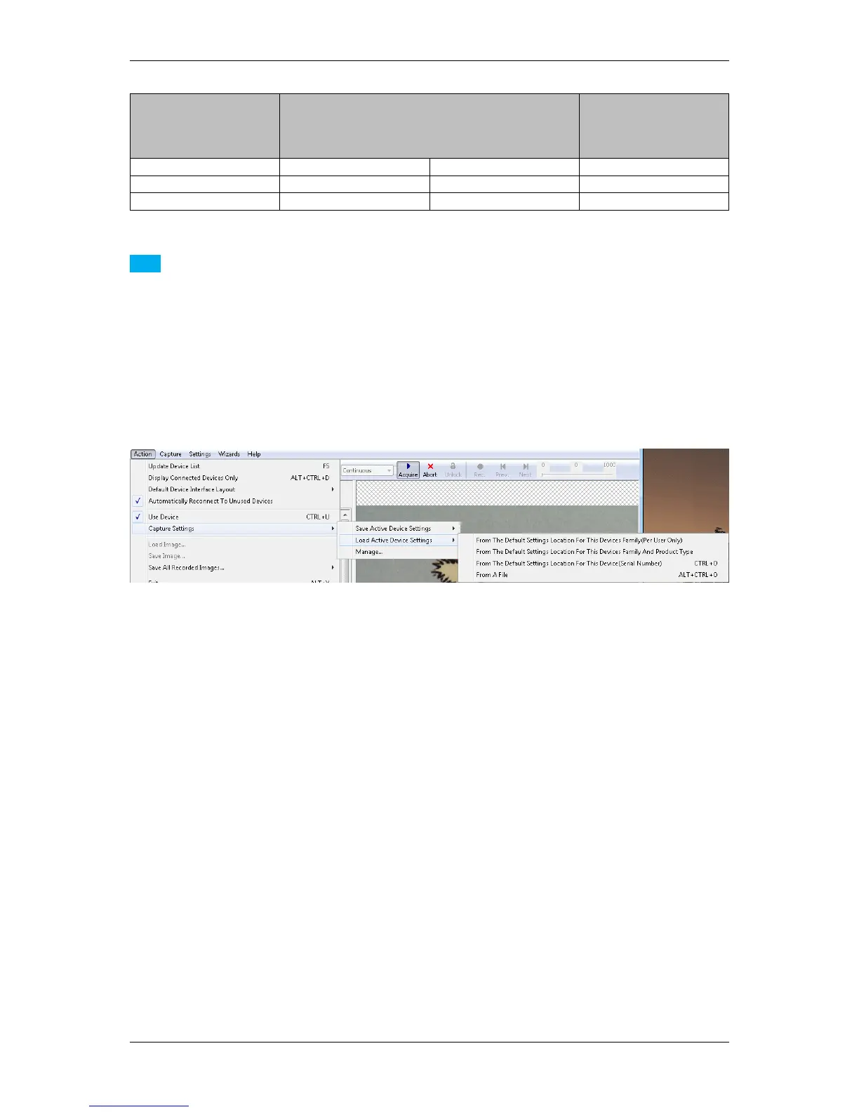 For devices operated in the GenICam interface layout further restriction apply: Settings created with a certain