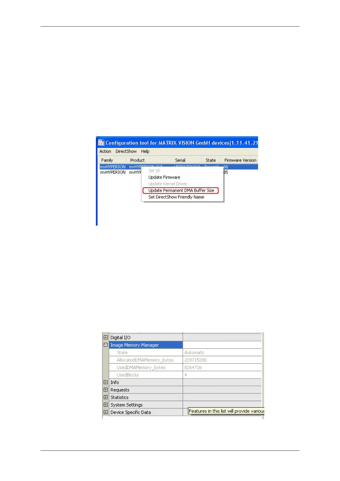 Figure 61:mvDeviceConfigure - Image memory