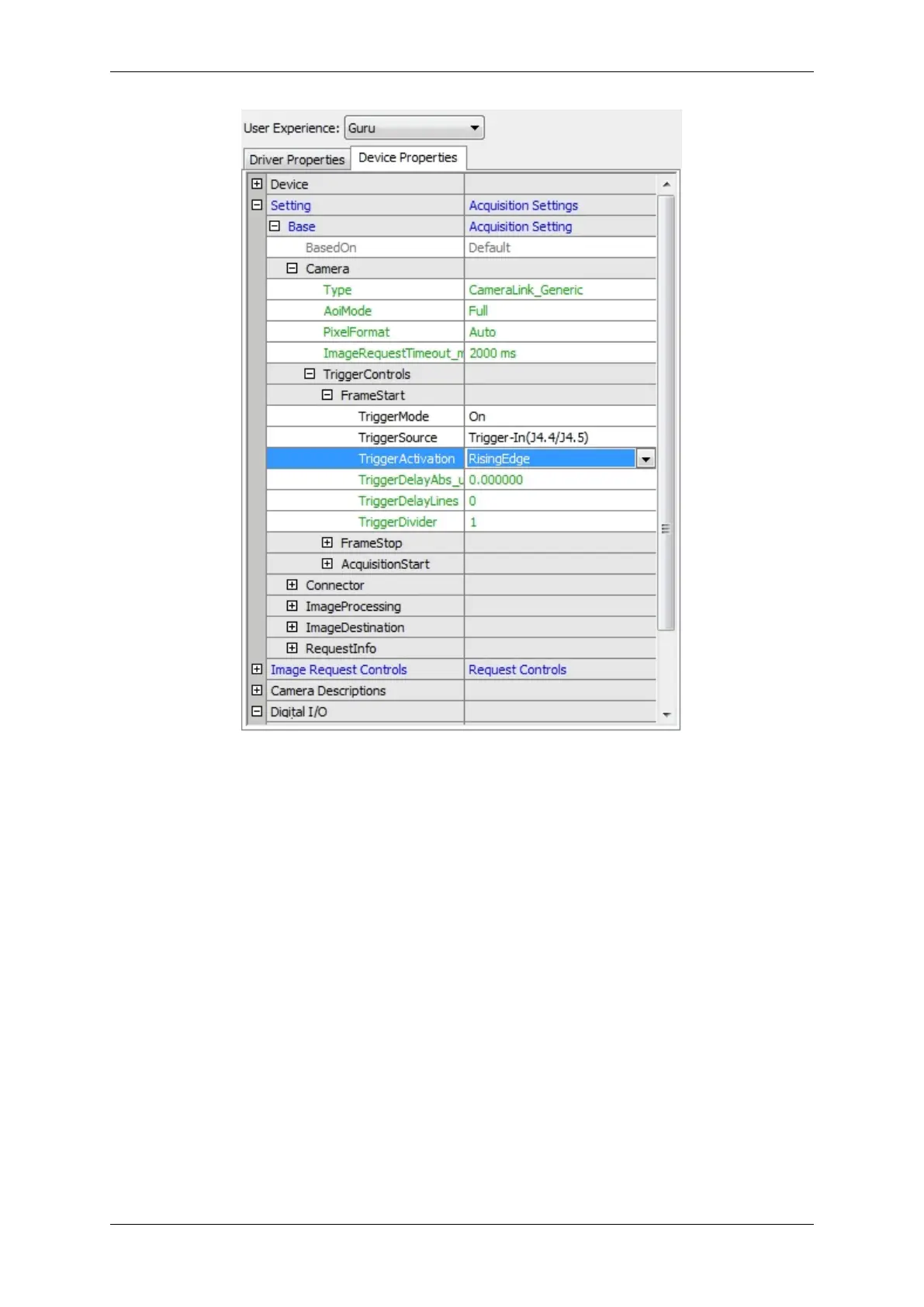 Figure 2: wxPropView - Trigger start condition