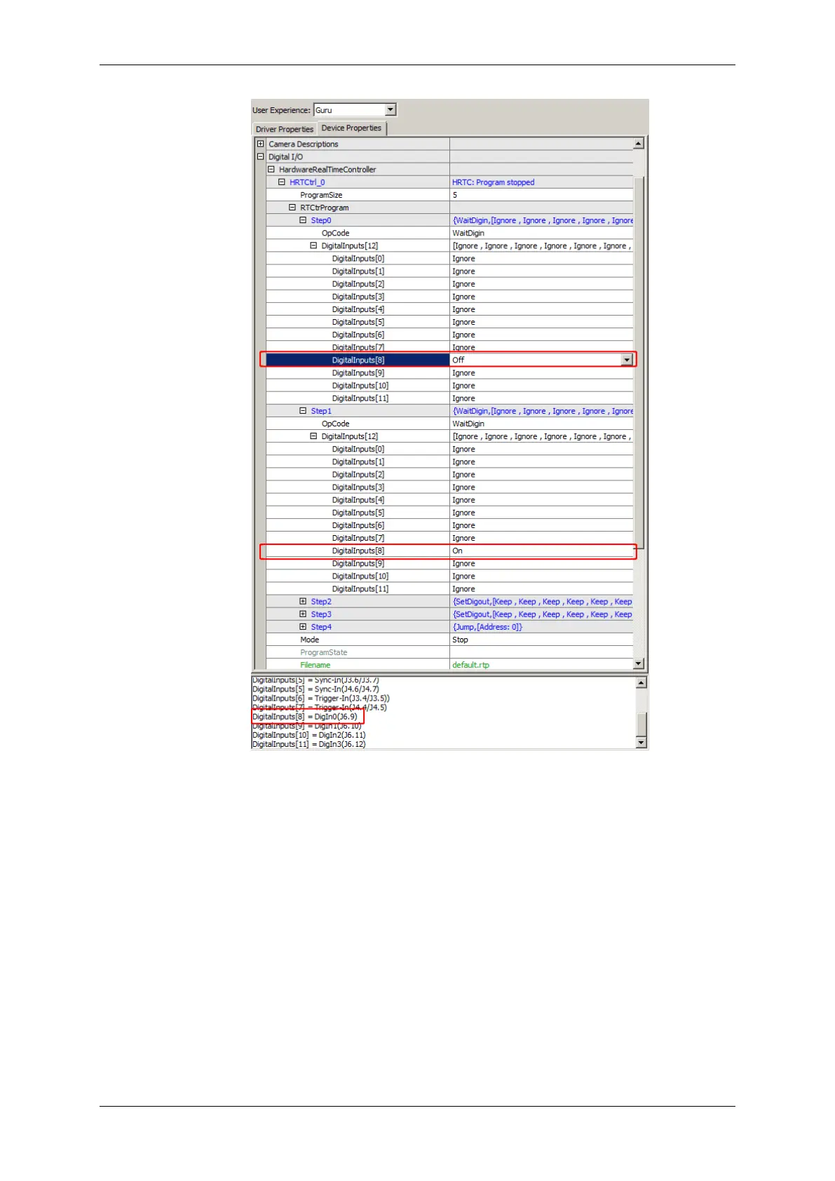 Figure 4: wxPropView - Digital I/O - HardwareRealTimeController