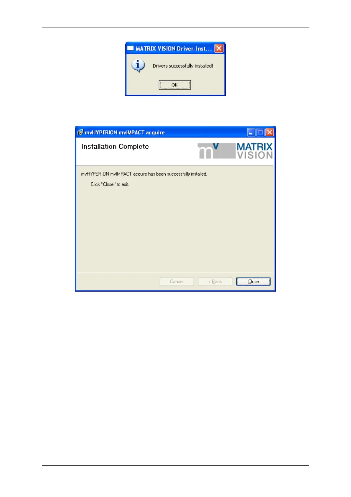 Figure 7: mvHYPERION installer - Driver successfully installed