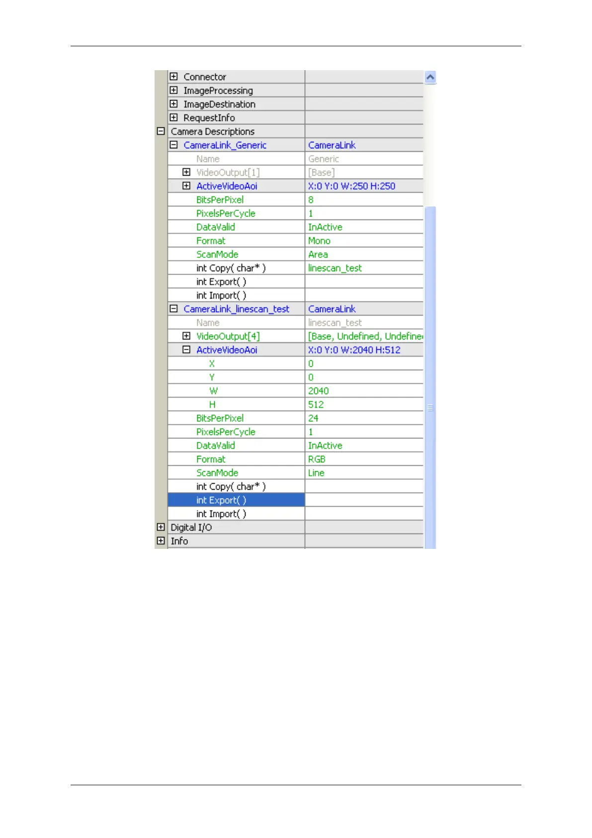 Figure 36: wxPropView - After re-opening of the device and selecting a imported camera