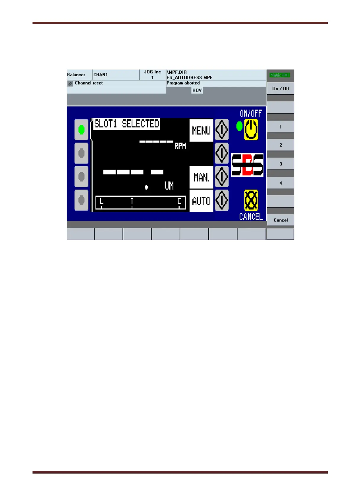 The balancer control panel is accessed from the HMI screen. Select [MENU SELECT] > [Balancer] to