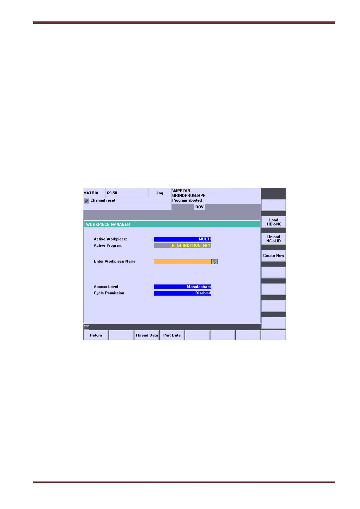 workpiece (sometimes called a job file) to the NC. If there are no existing workpieces listed in the