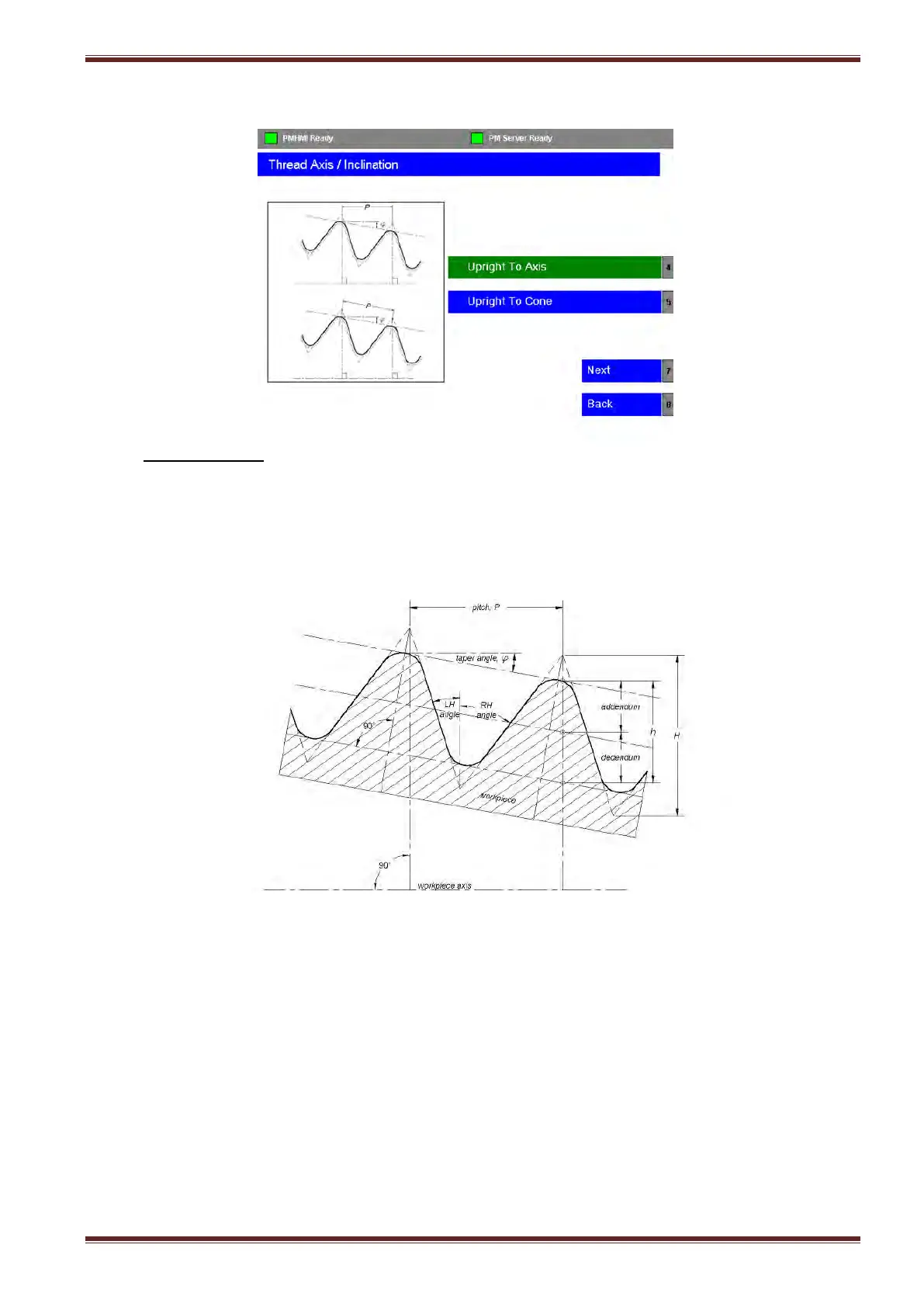 Select [Upright To Axis] softkey if the thread pitch dimension is specified axially to the