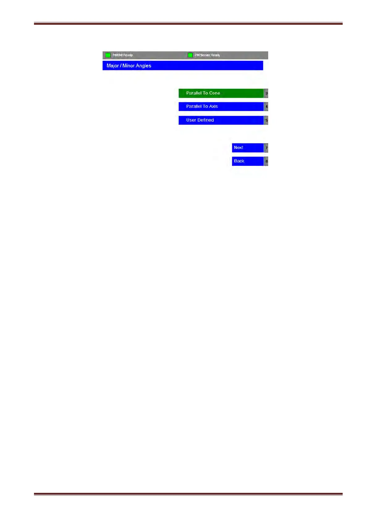 Select [Parallel To Axis] followed by [Next] softkey to continue.