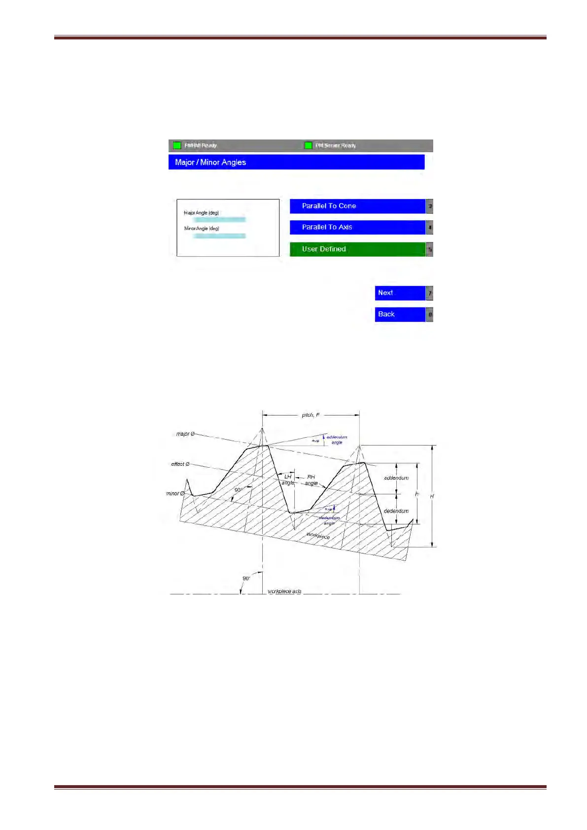 Enter the Major (addendum angle) and Minor (dedendum angle) angle values in the
