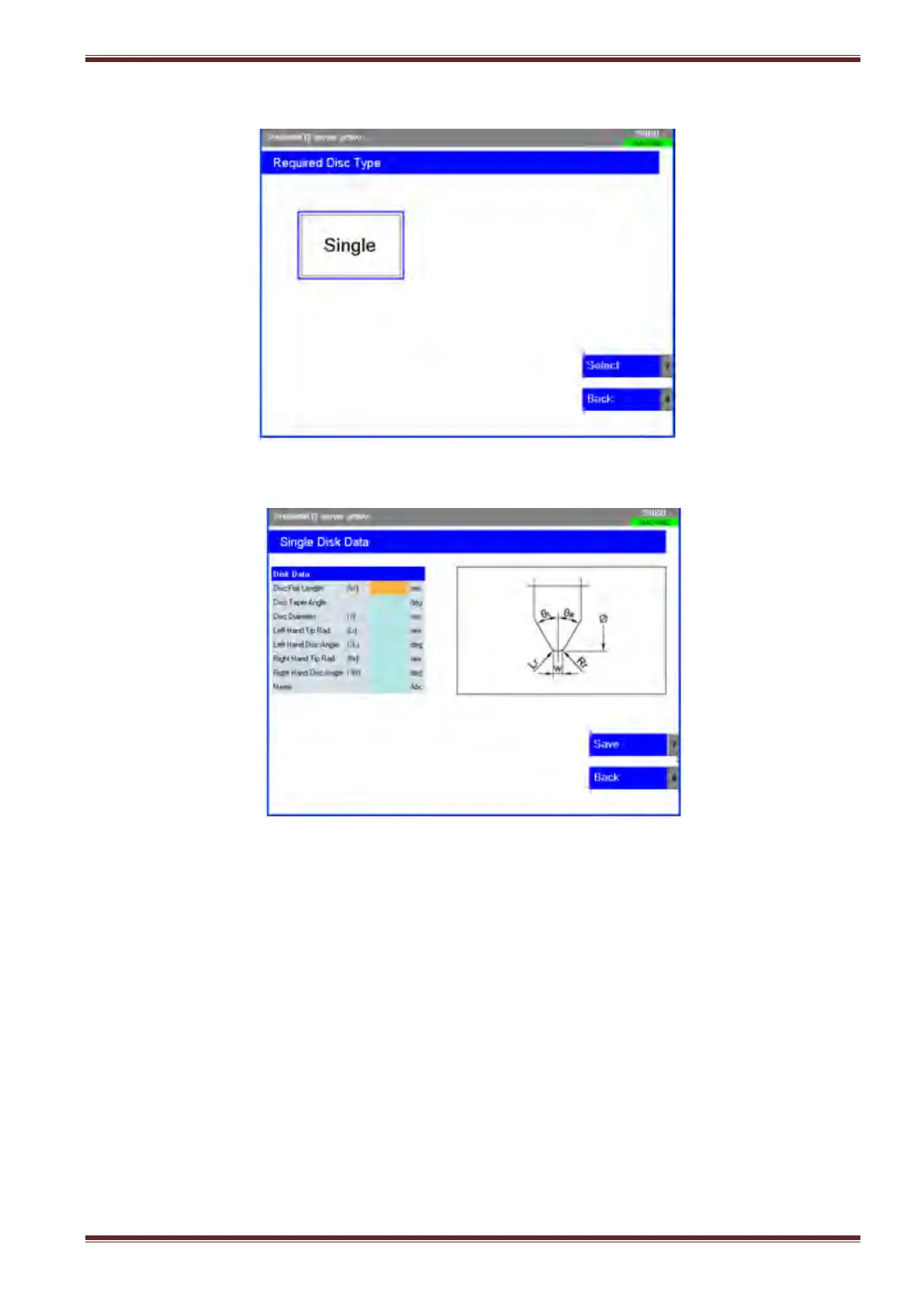 4. Select the [Select] softkey to continue to the input data screen.
