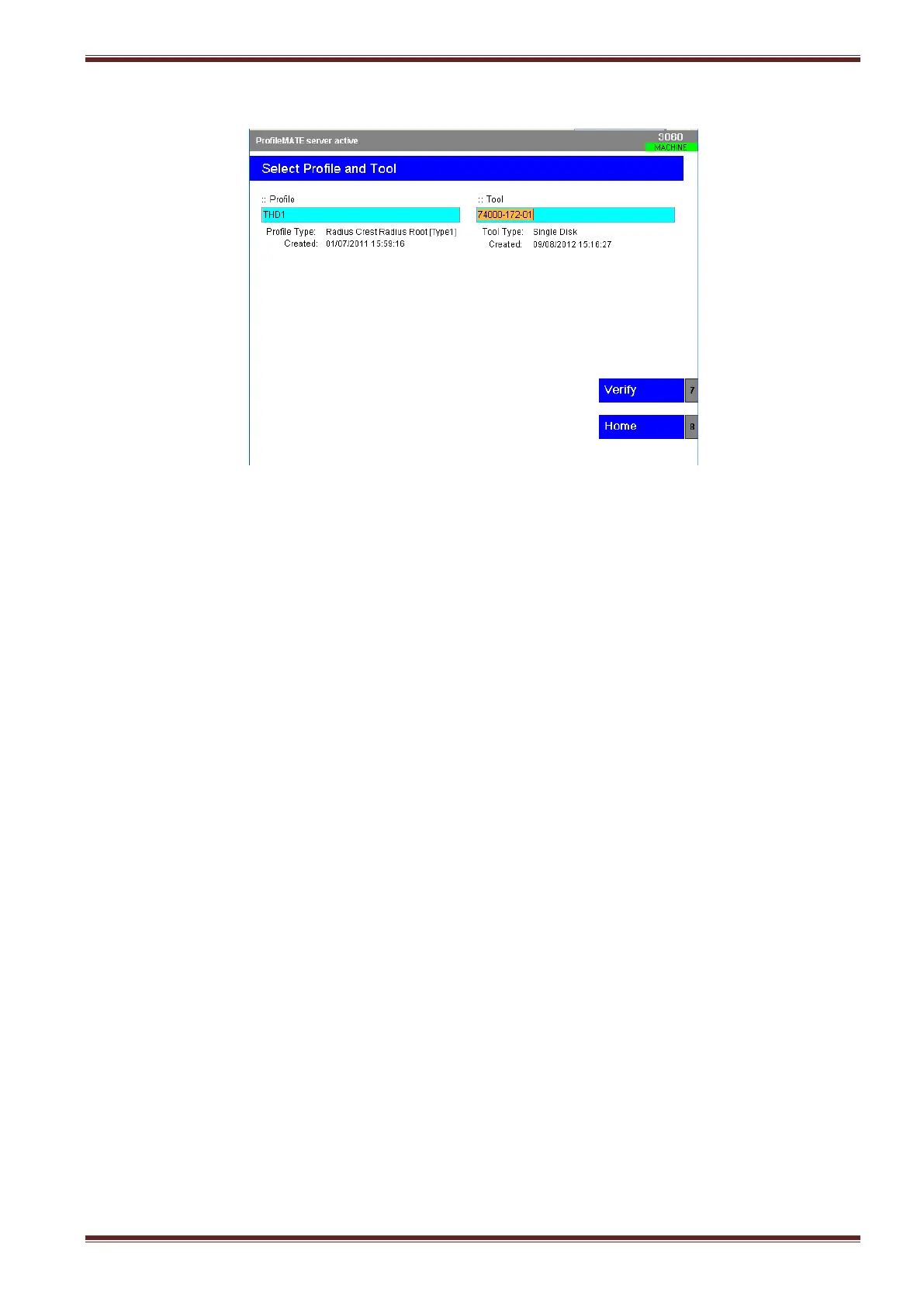 8. Select the [Select Profile and Tool] softkey.