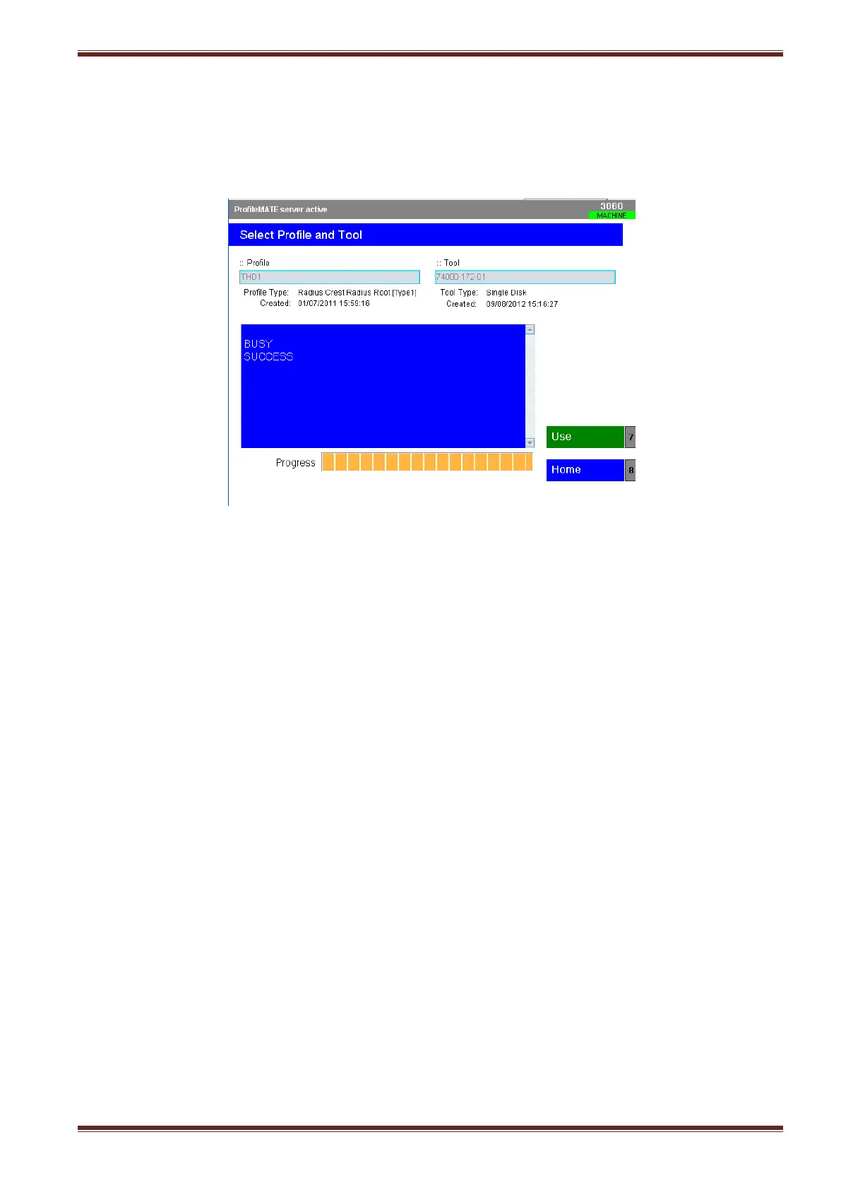 BUSY - SUCCESS message returned and the [USE] softkey colour changed from blue to green.