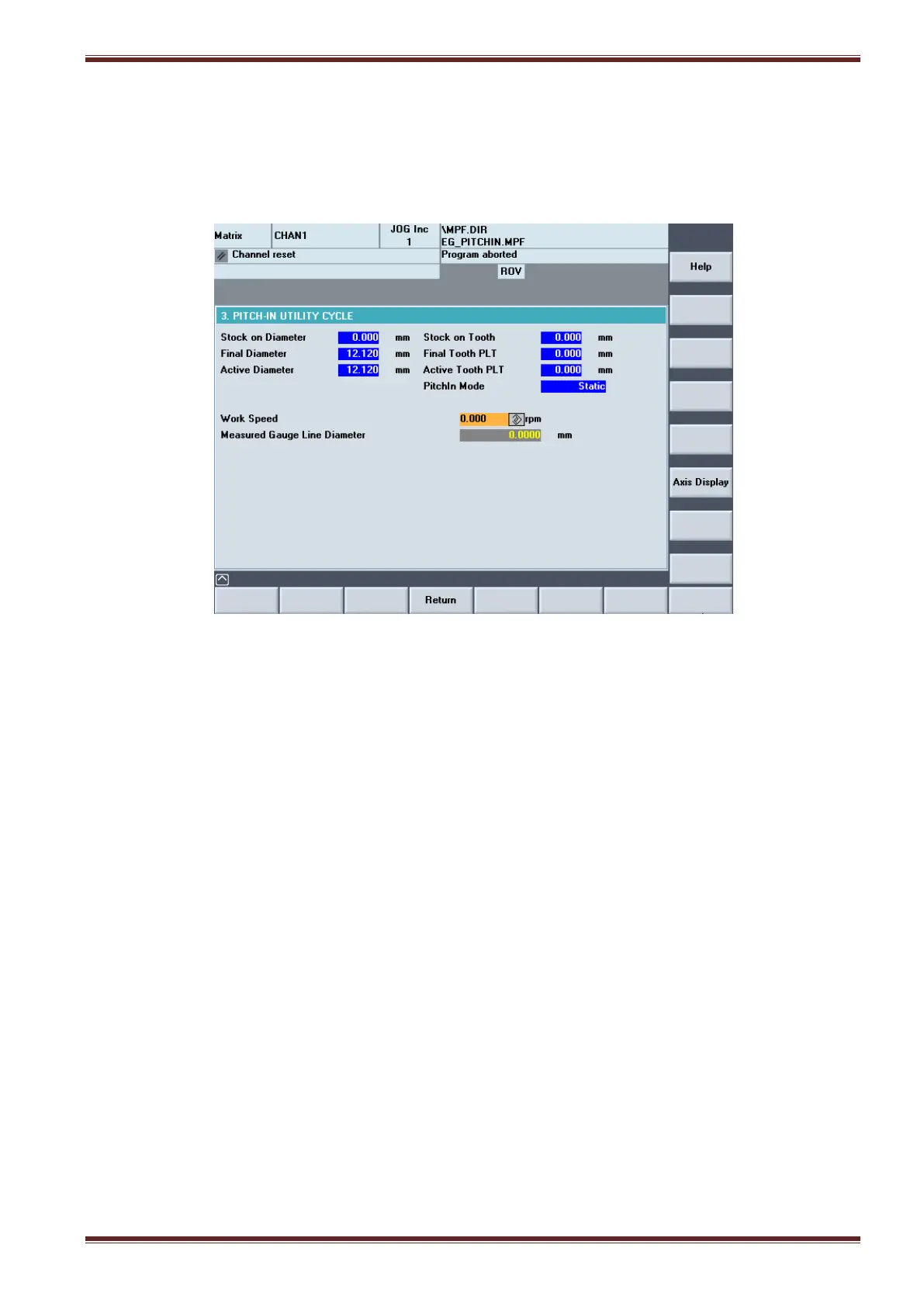 Use this setting to synchronise the grinding wheel to the pre-cut thread or non-threaded workpiece.