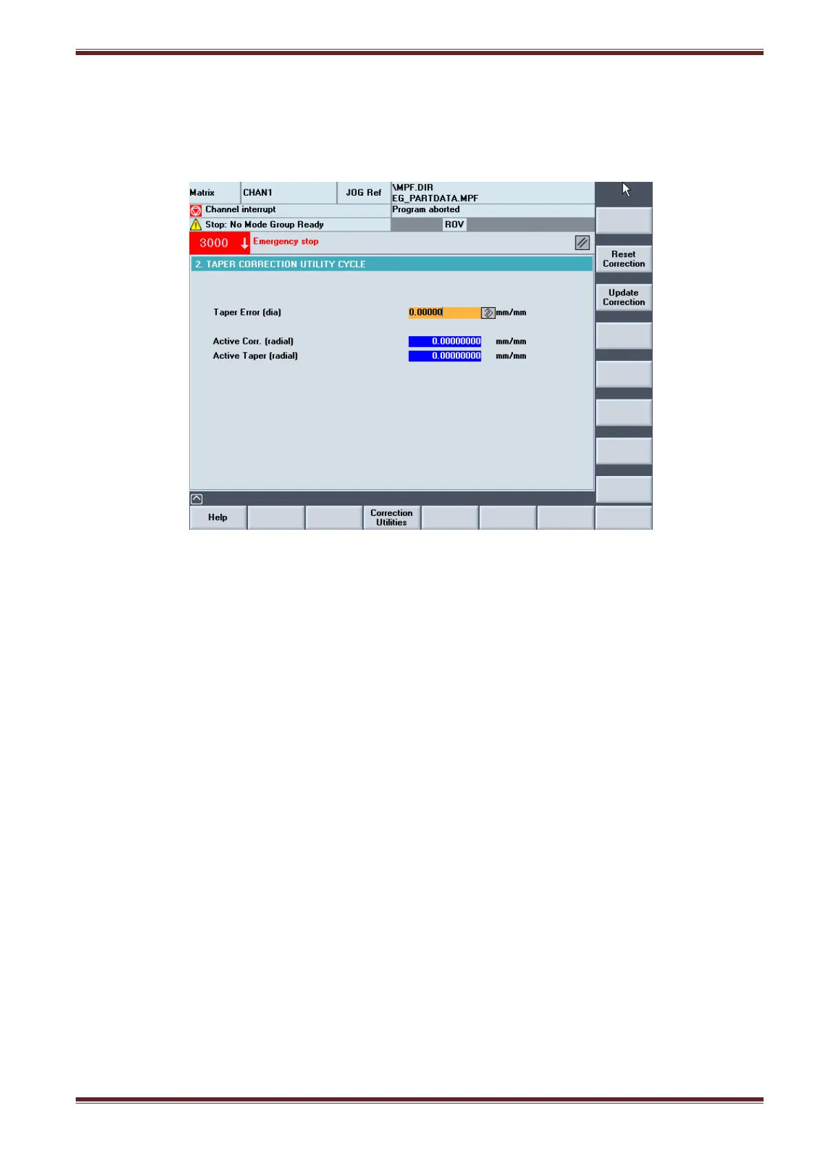 after it has been measured. Taper correction is applied to the machine and remains active even
