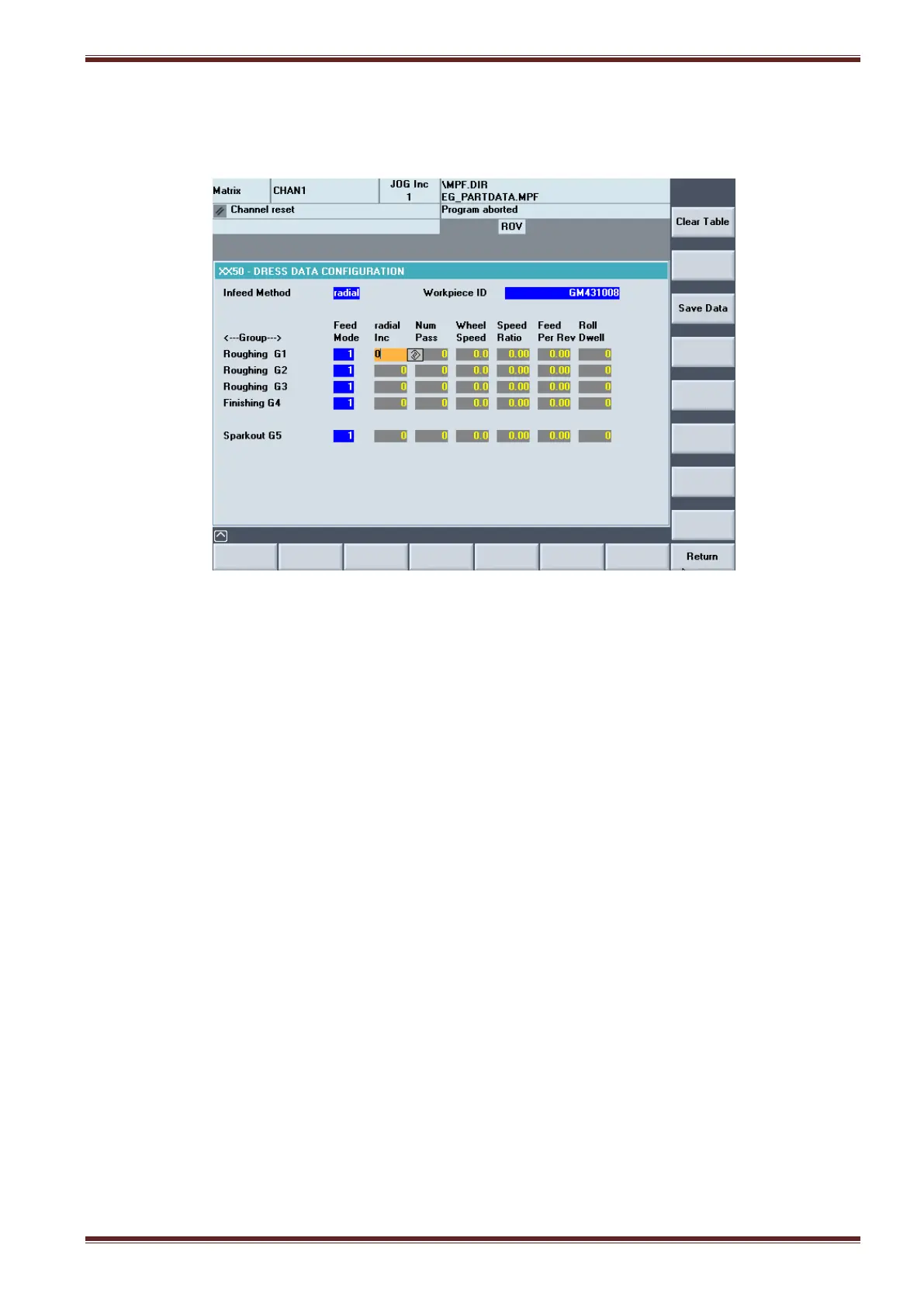 4. Finally, press the [SAVE Data] vertical softkey to save the dressing cycle data to the workpiece