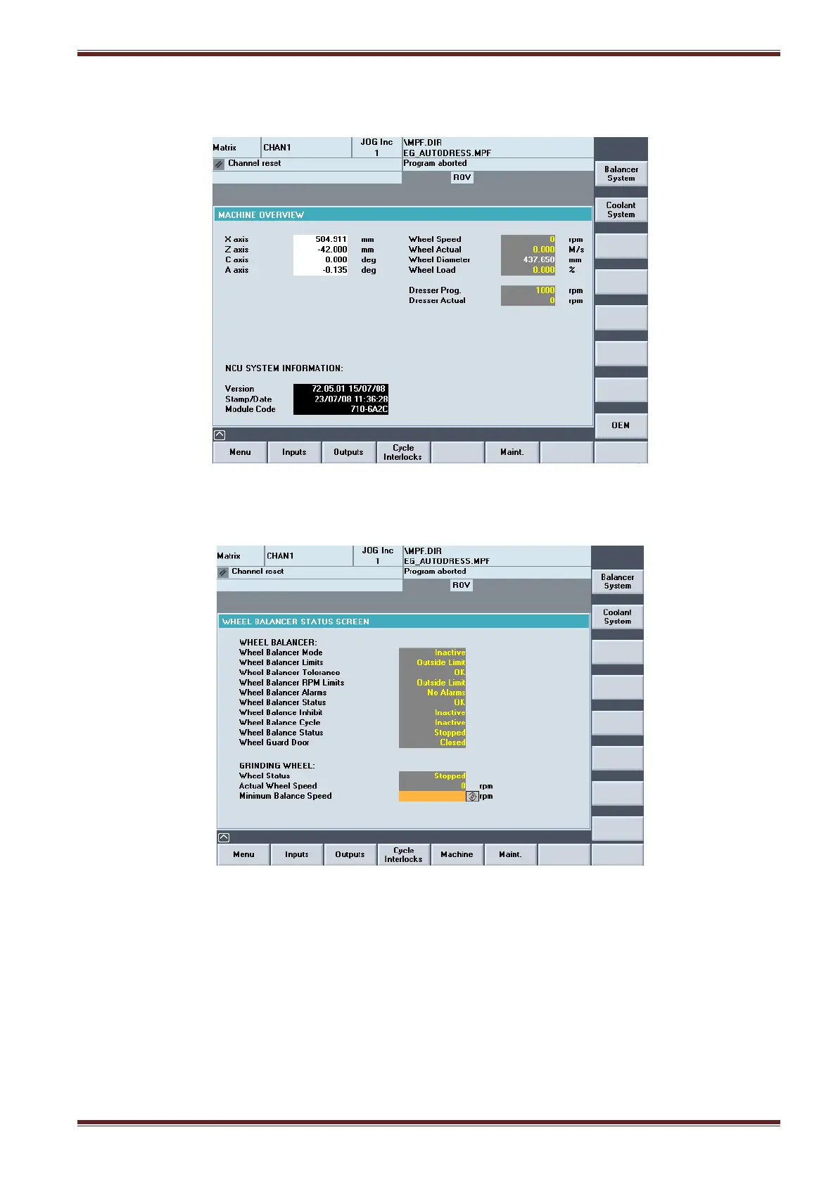 Wheel balancer system diagnostic screen