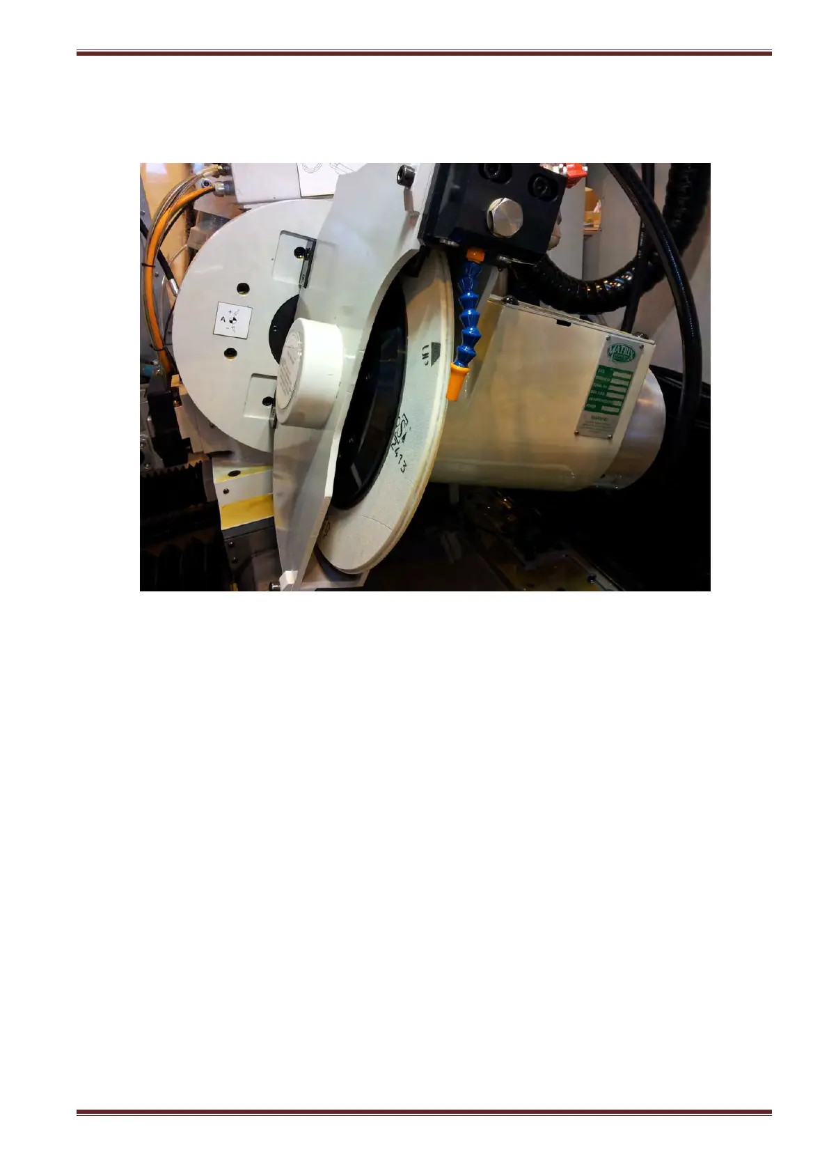 Mounted directly above the grinding and to the fixed part of the wheel guard is the coolant oil