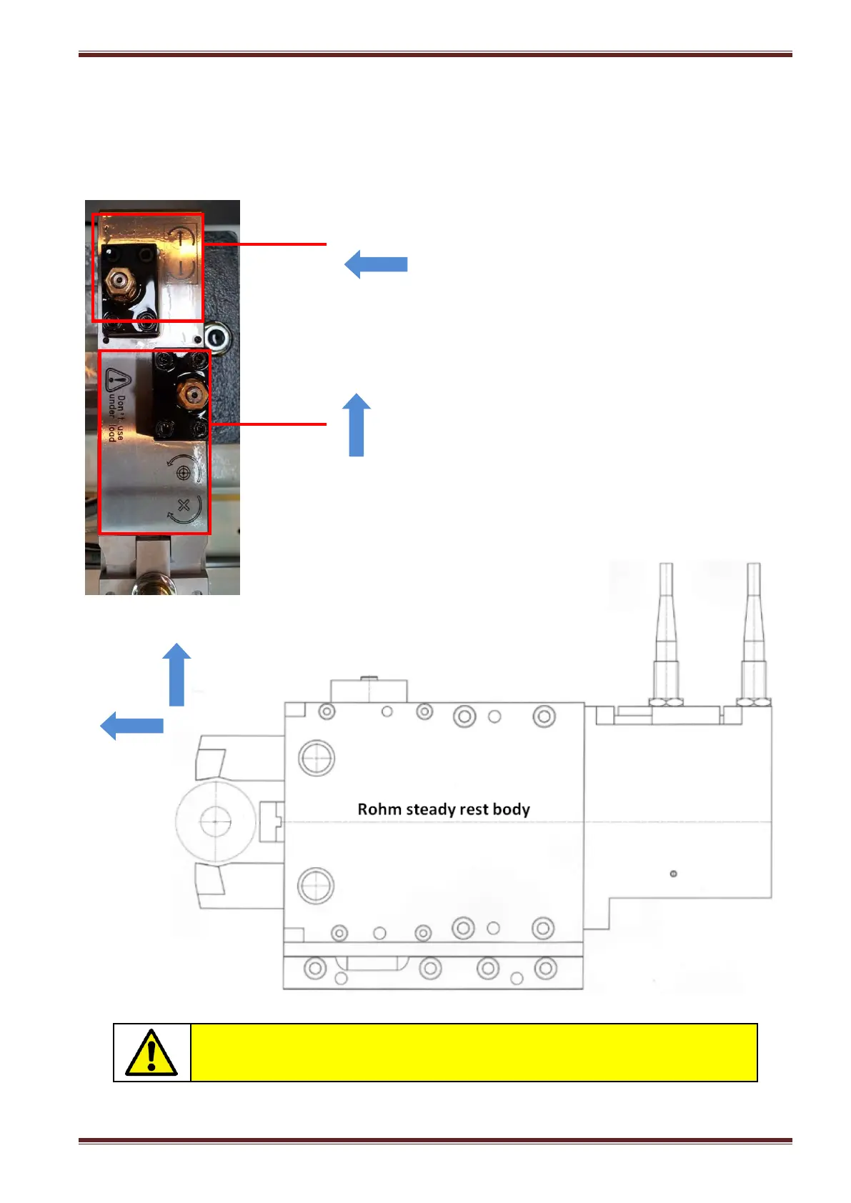 Two screws located at the top of the steady rest body allow you to make a fine micro-adjustment