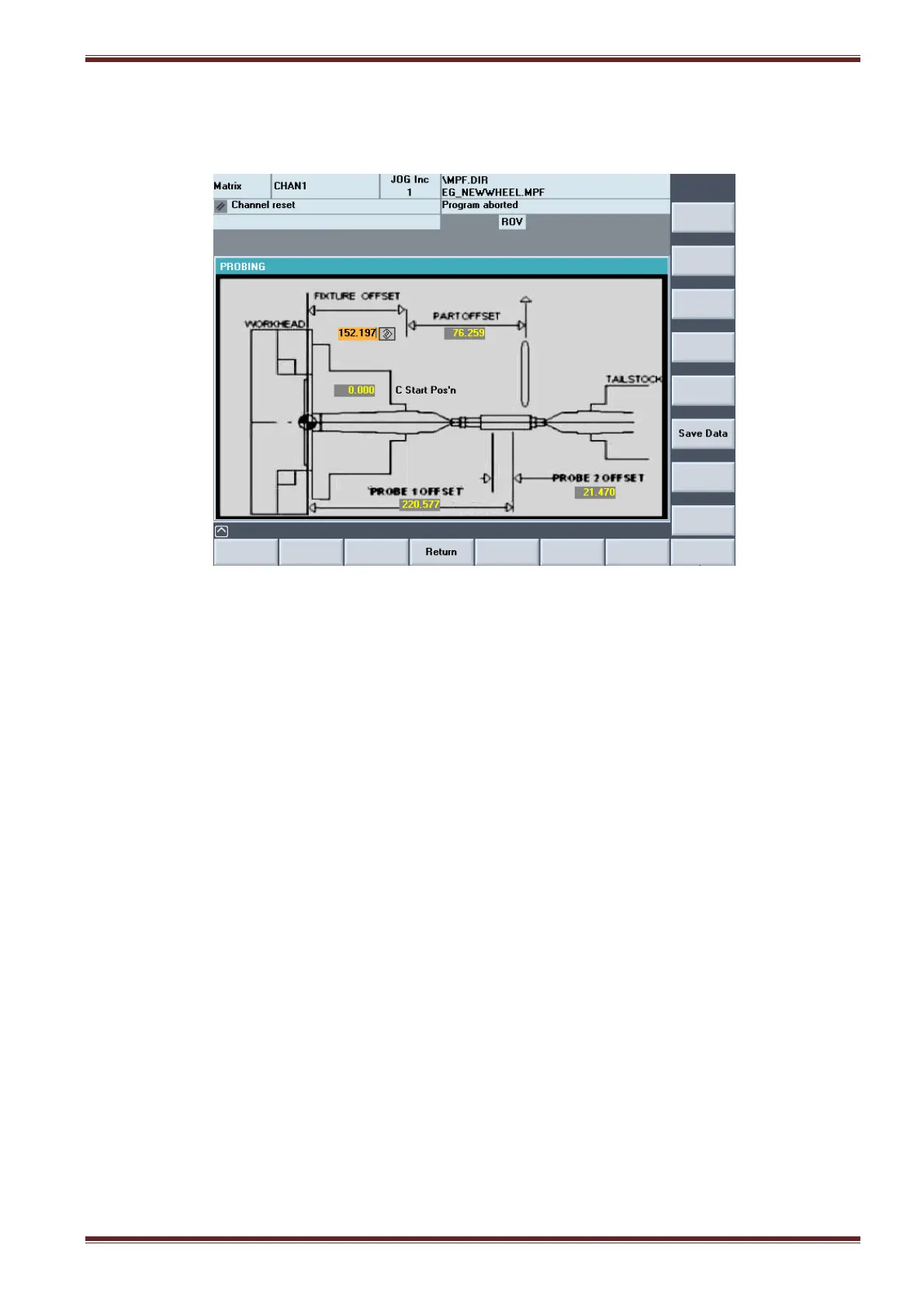 4. Select the WORK DATUM screen and press the [Set Z start posn] key.