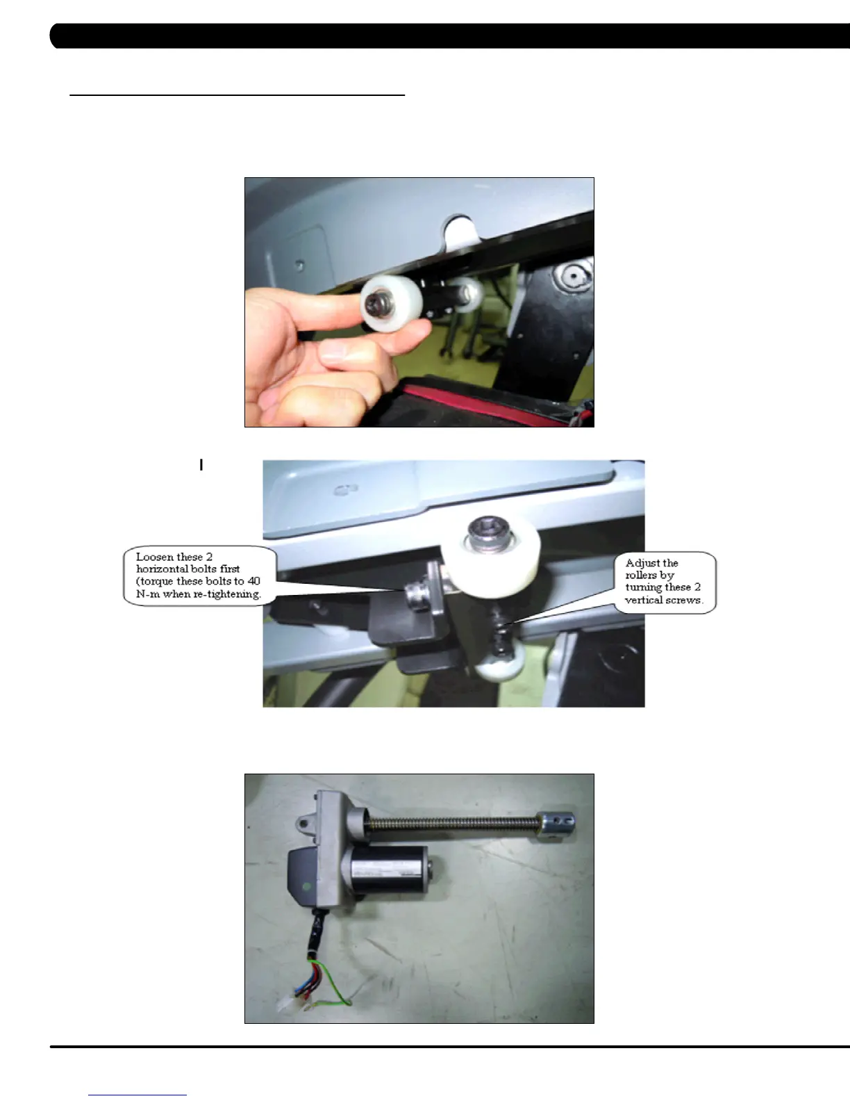 8) If the rollers need to be adjusted, loosen the horizontal bolts simultaneously rst, then adjust the roller friction by adjusting the vertical screws
