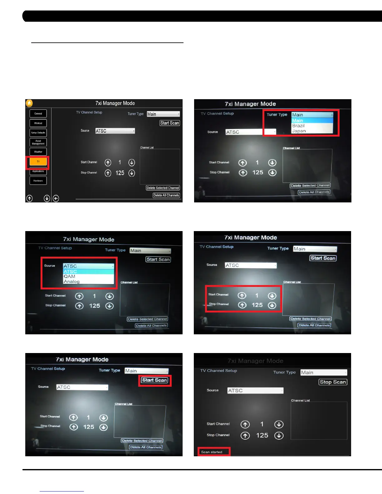 Once the cardio equipment has been installed and proper power and cable wiring is provided, The Television must be programmed to the club's