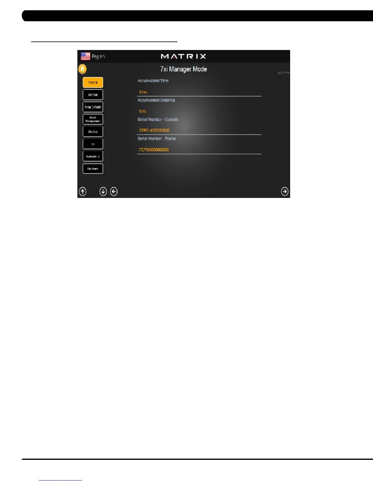 2) Manager Mode is divided into 9 tabs, located on the left side of the screen. They are General, Workout, Setup Defaults, Asset Management,