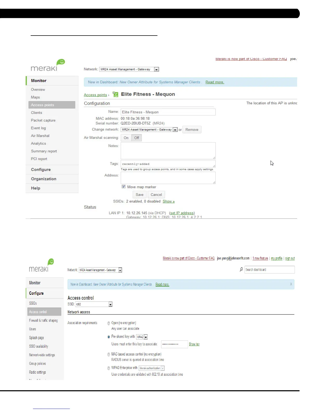 a. Use your web browser to open www.meraki.com and login, in the access point screen you can modify the AP name and verify the MAC