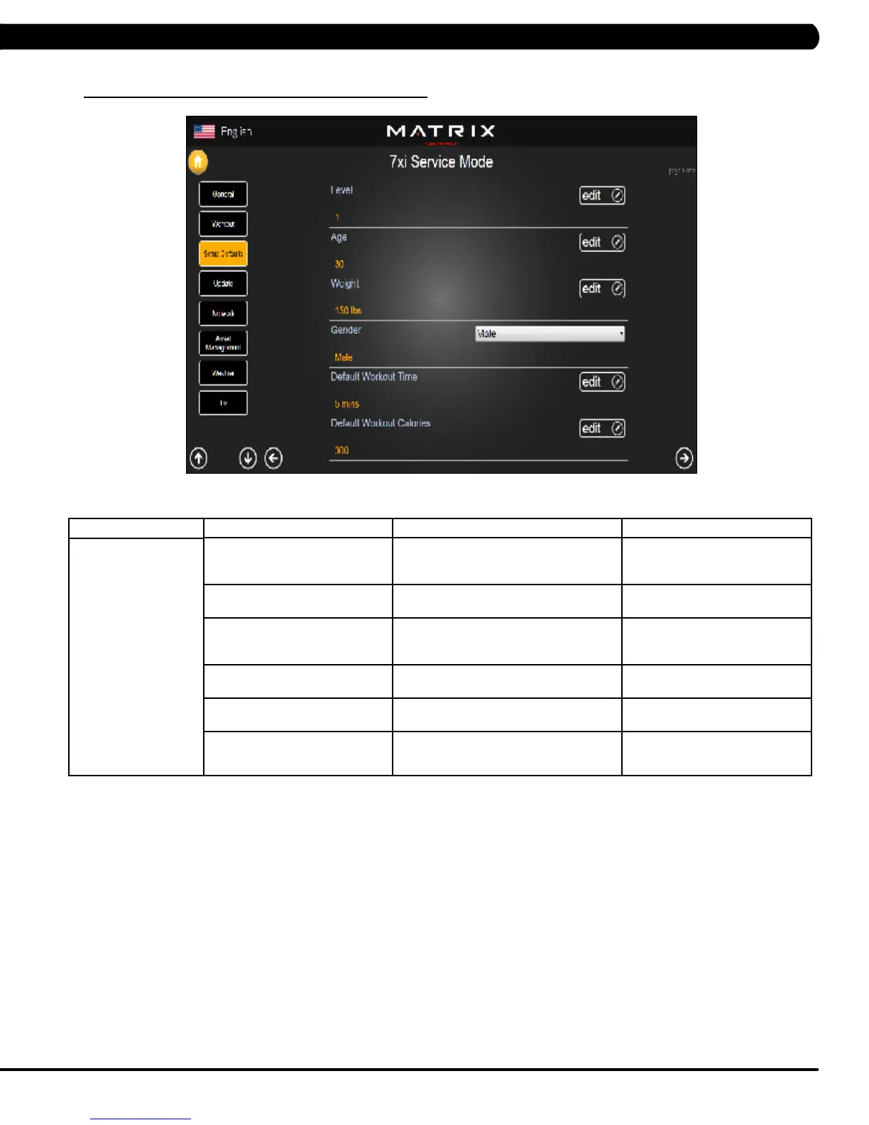 7.4 SERVICE MODE - SETUP DEFAULTS – TAB 1