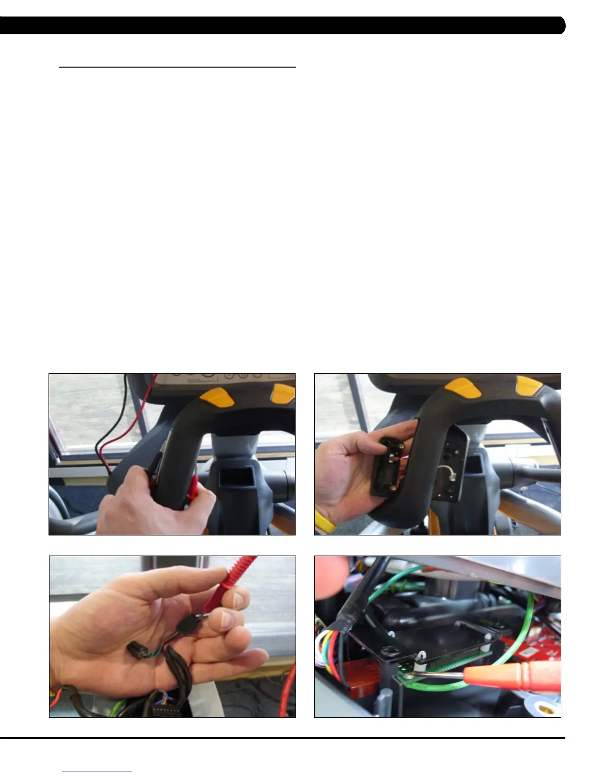 2) Remove the console from the unit and verify continuity of the HR grip wiring. With a multi meter set for ohms, place one prong on the HR grip