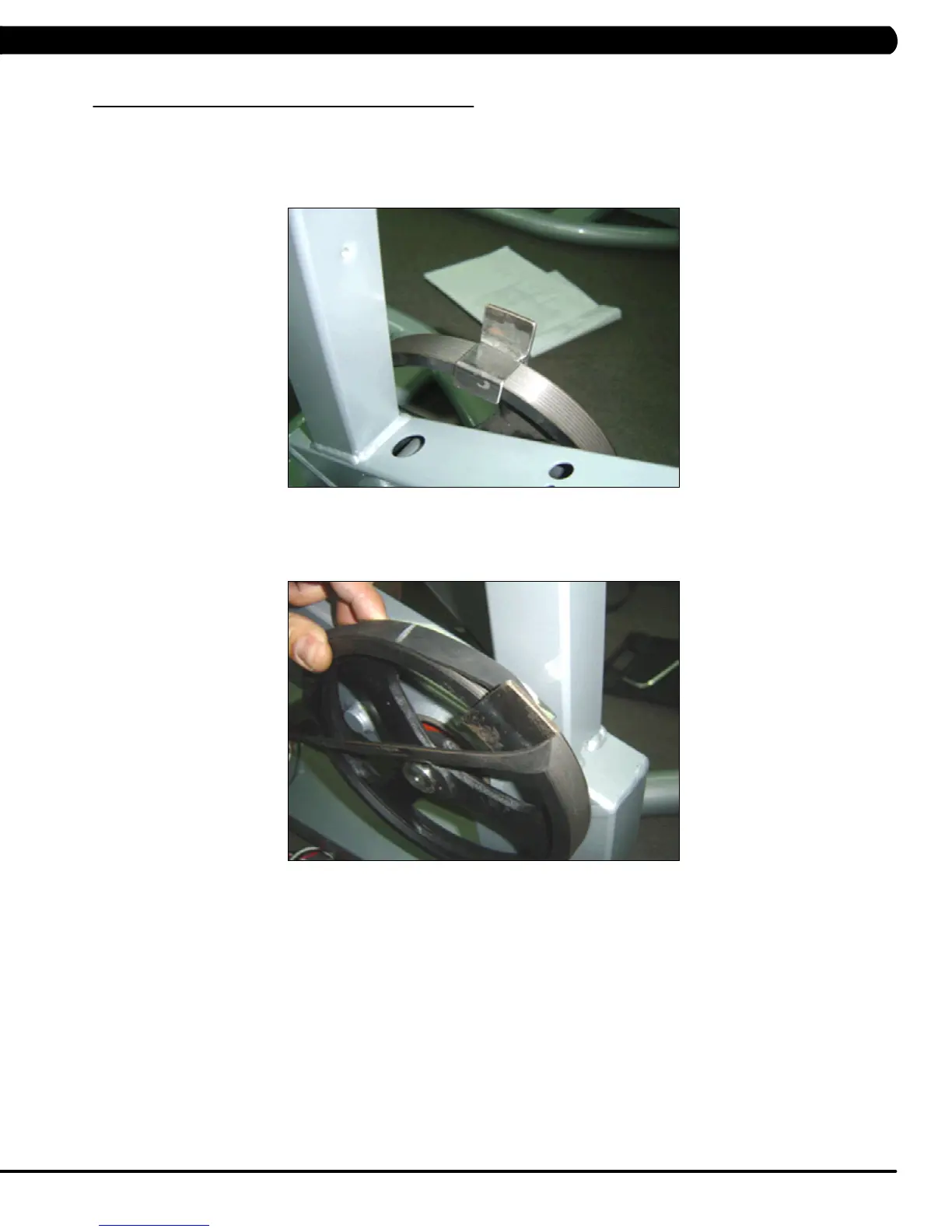7) Turn the pulley until the belt is installed. Rotate the pulley at least 3 full rotations to insure that the belt is centered.