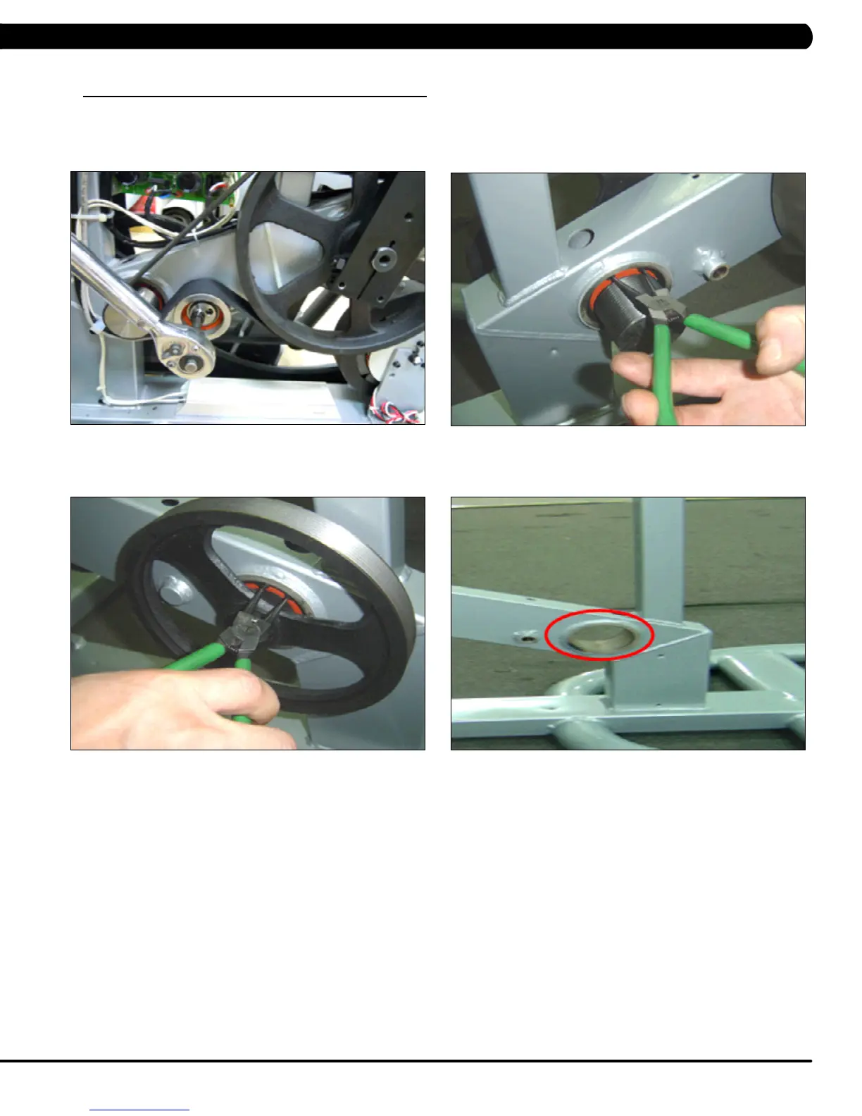 7) Reverse Steps 1-6 to install a new pulley axle set. Rotate the pulley to make sure that the motion is smooth and that there is no wobbling to