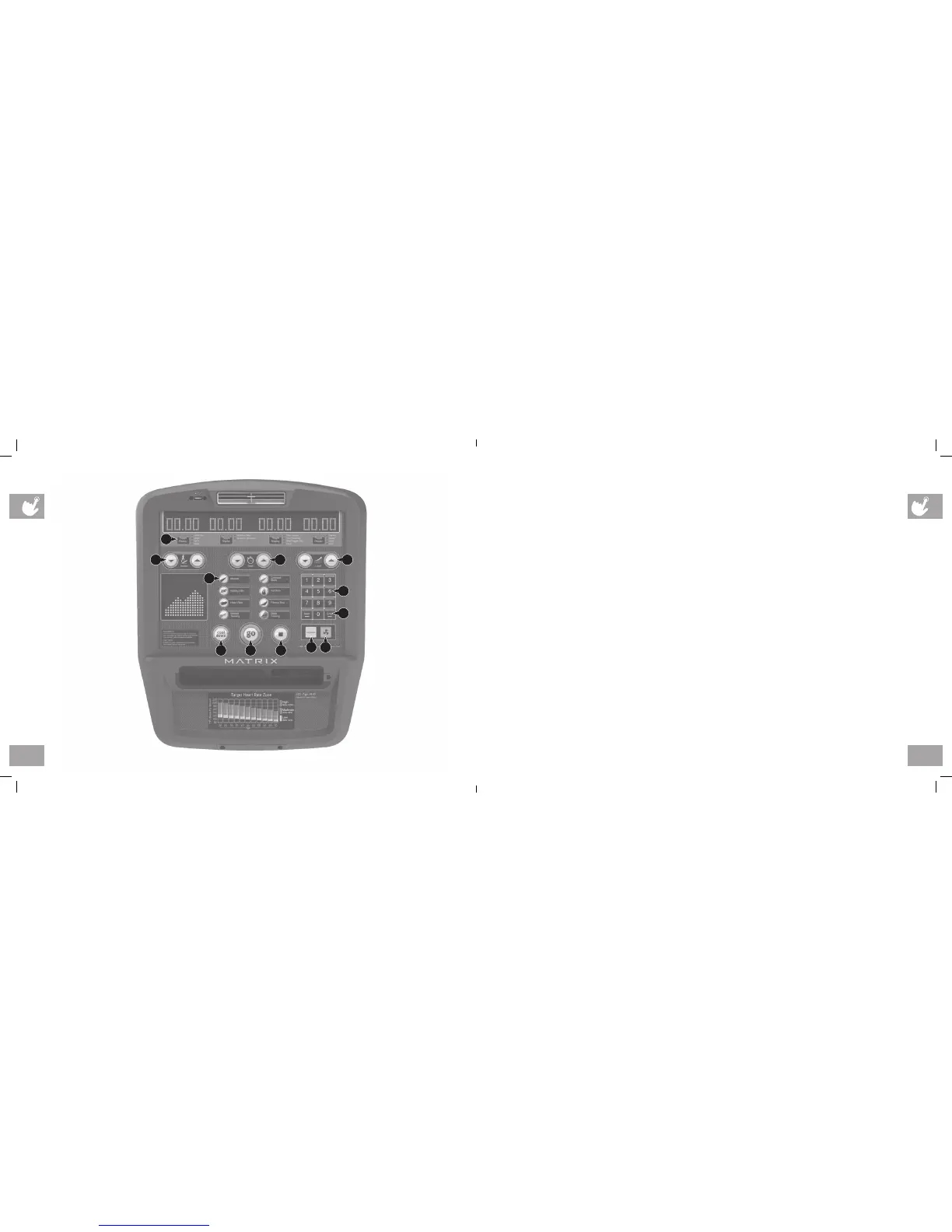 I NUMBER KEYPAD: Workout data input for workout setup. Level adjustment during workout.