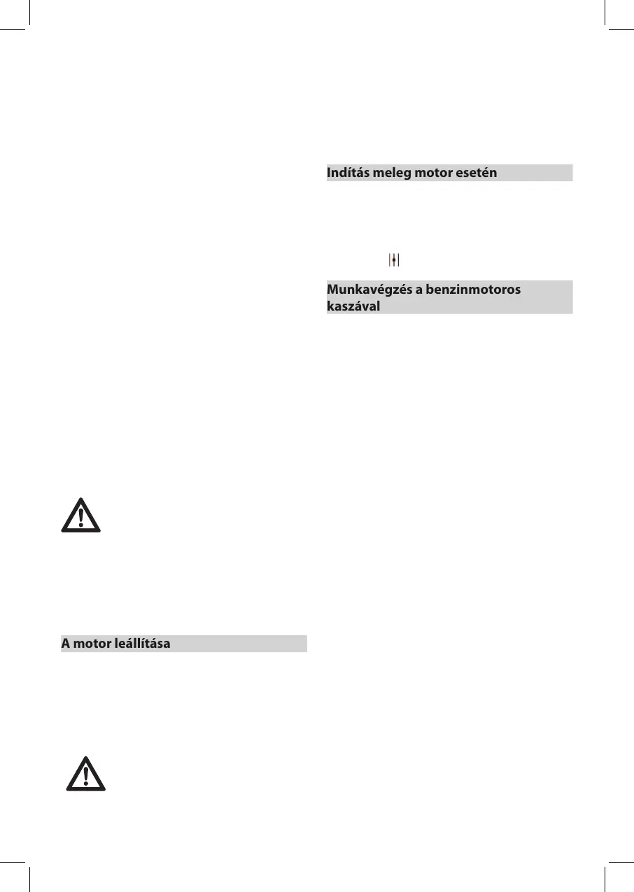 - Tartsa a benzinmotoros kaszát mindig két kézzel