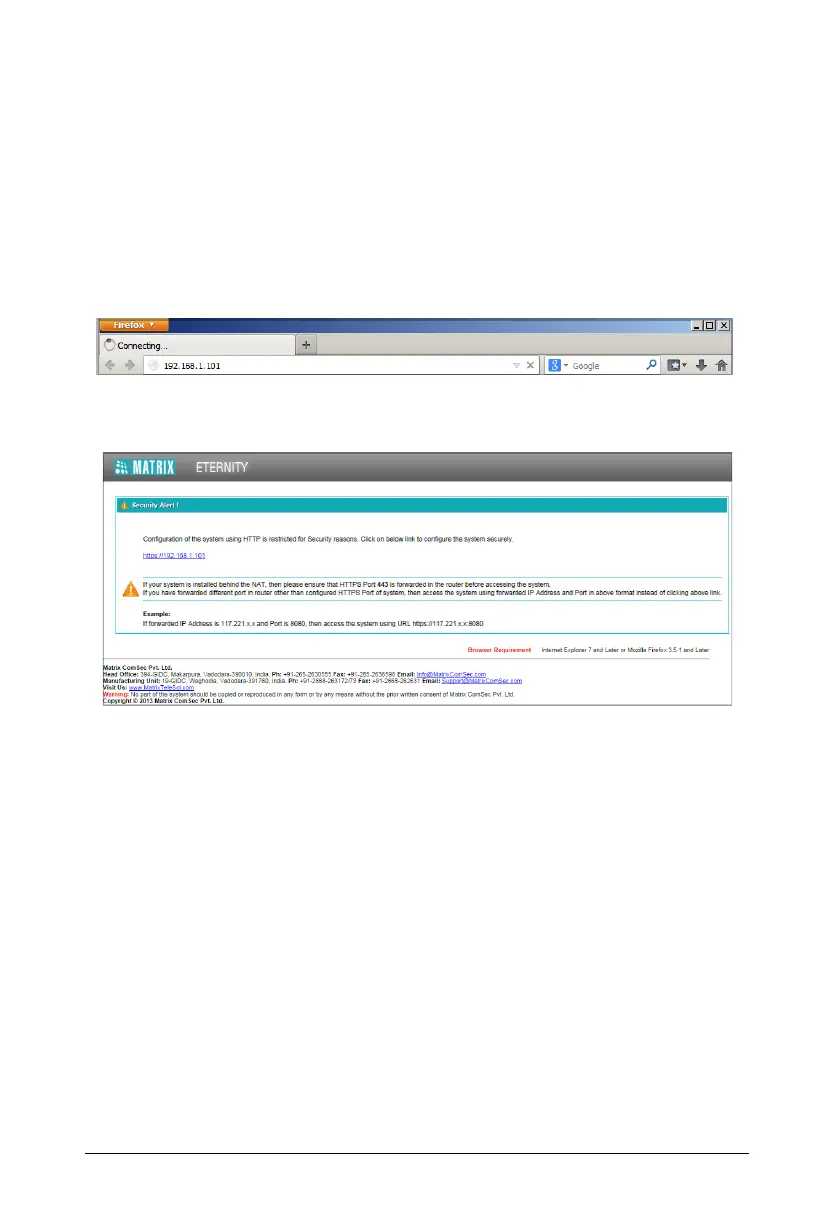 • Enter the IP address of the Ethernet Port of ETERNITY in the address bar of the browser.