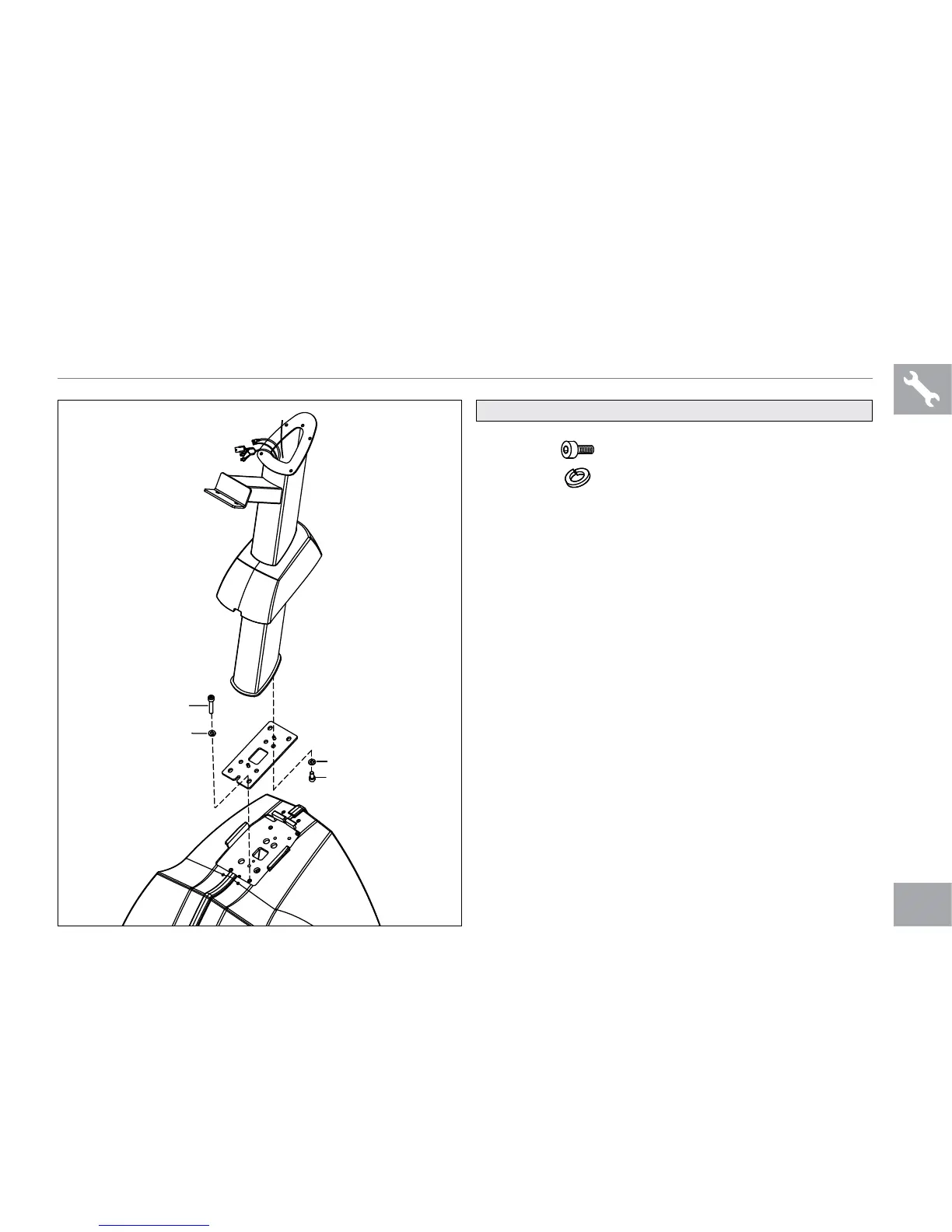 using 4 BOLTS (G), 4 FLAT WASHERS (H), 4