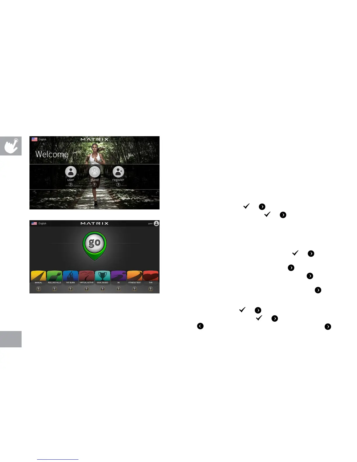 • Touch the GUEST button to workout anonymously.