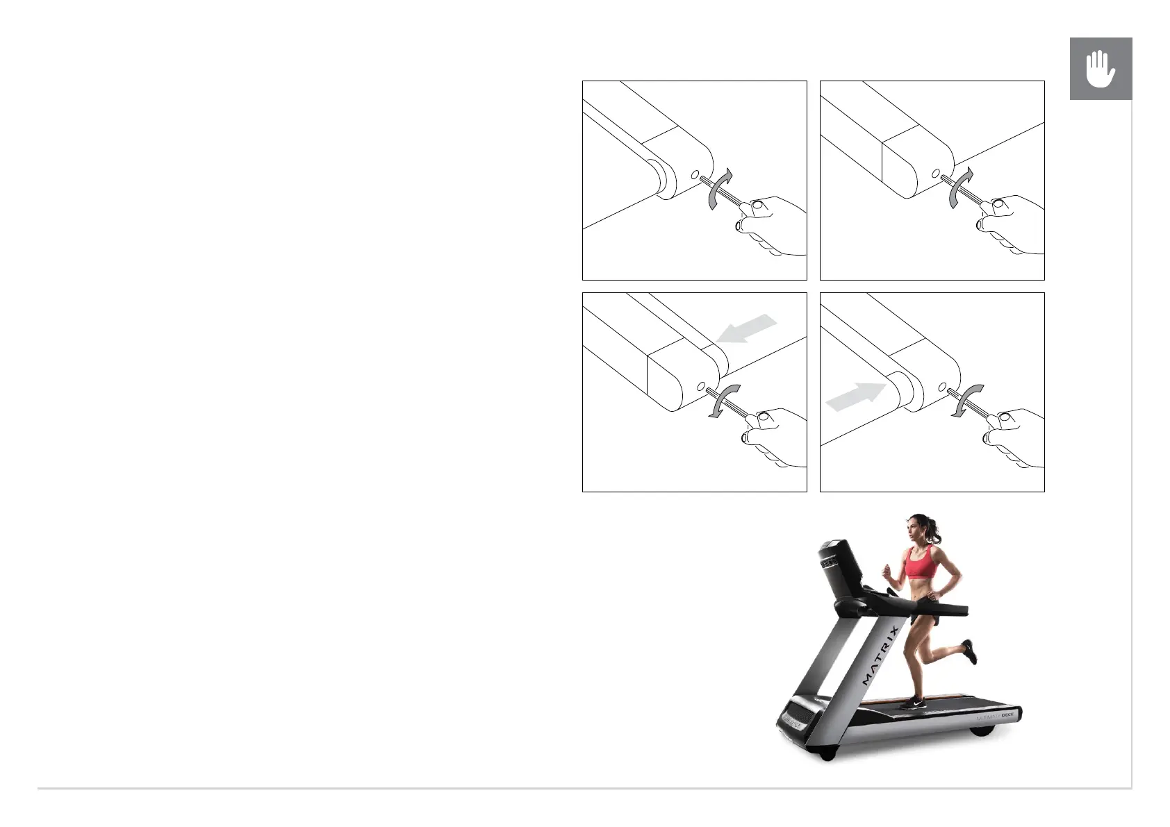 • DO NOT start the treadmill running belt or press any speed buttons until directed to while tensioning the running belt.
