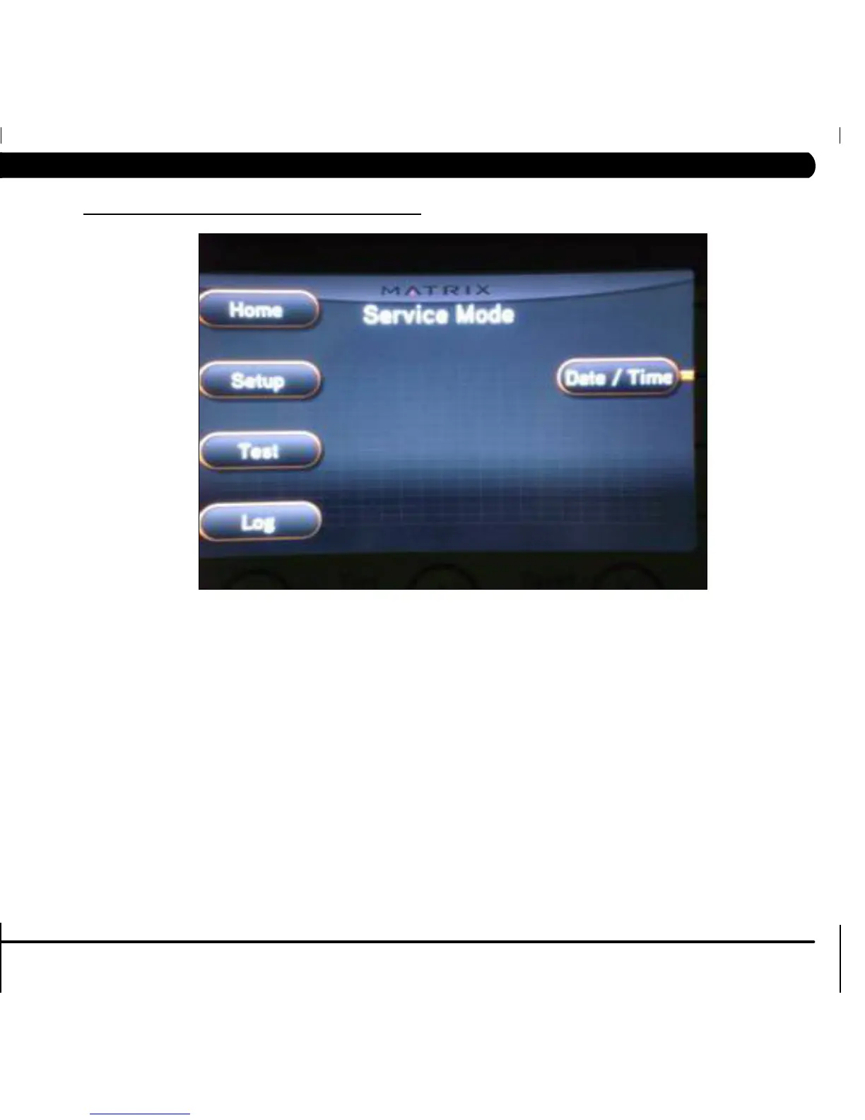 2) Service Mode is divided into 4 tabs. They are Setup, Test, Log, and Date & Time.