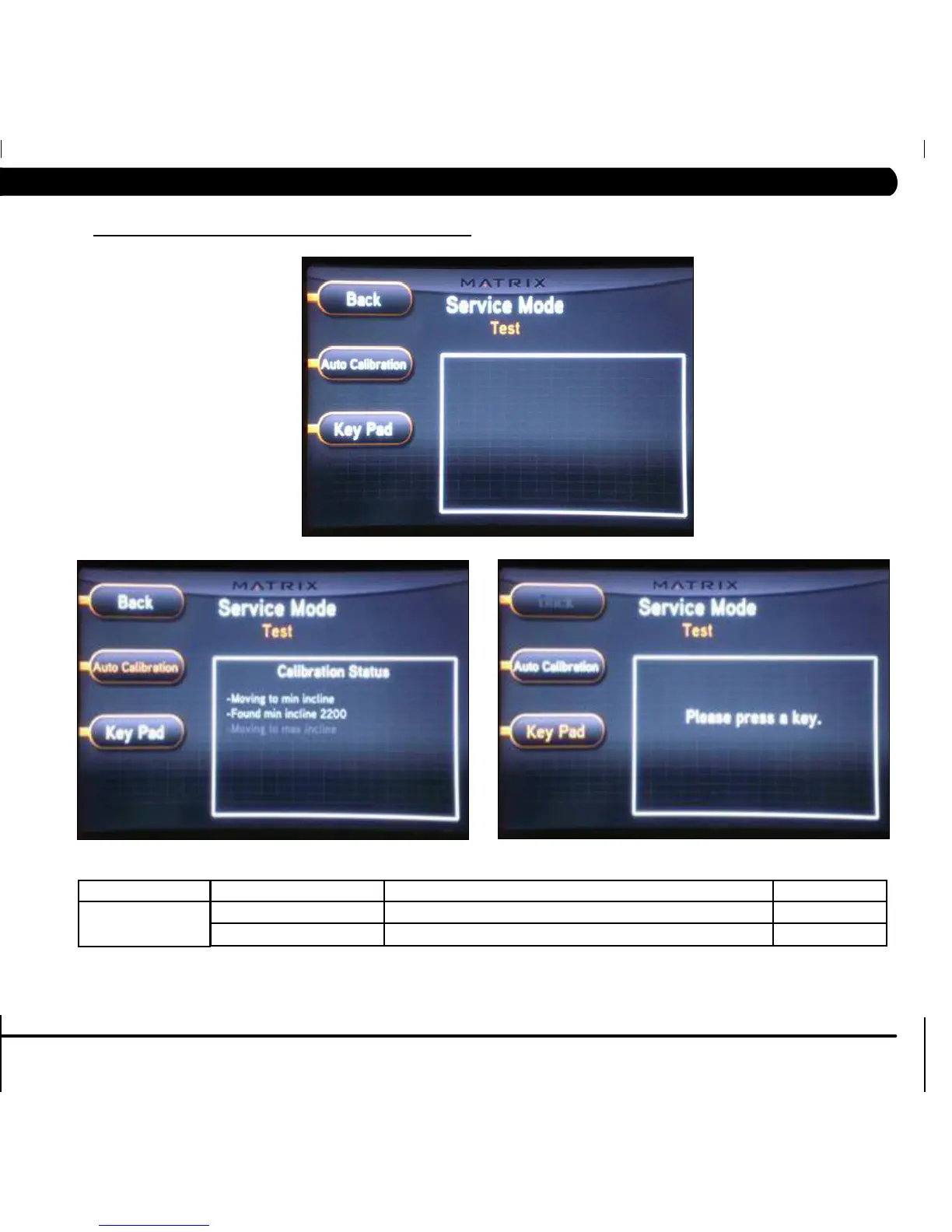 Auto Calibration This option is to calibrate the incline parameters. N/A