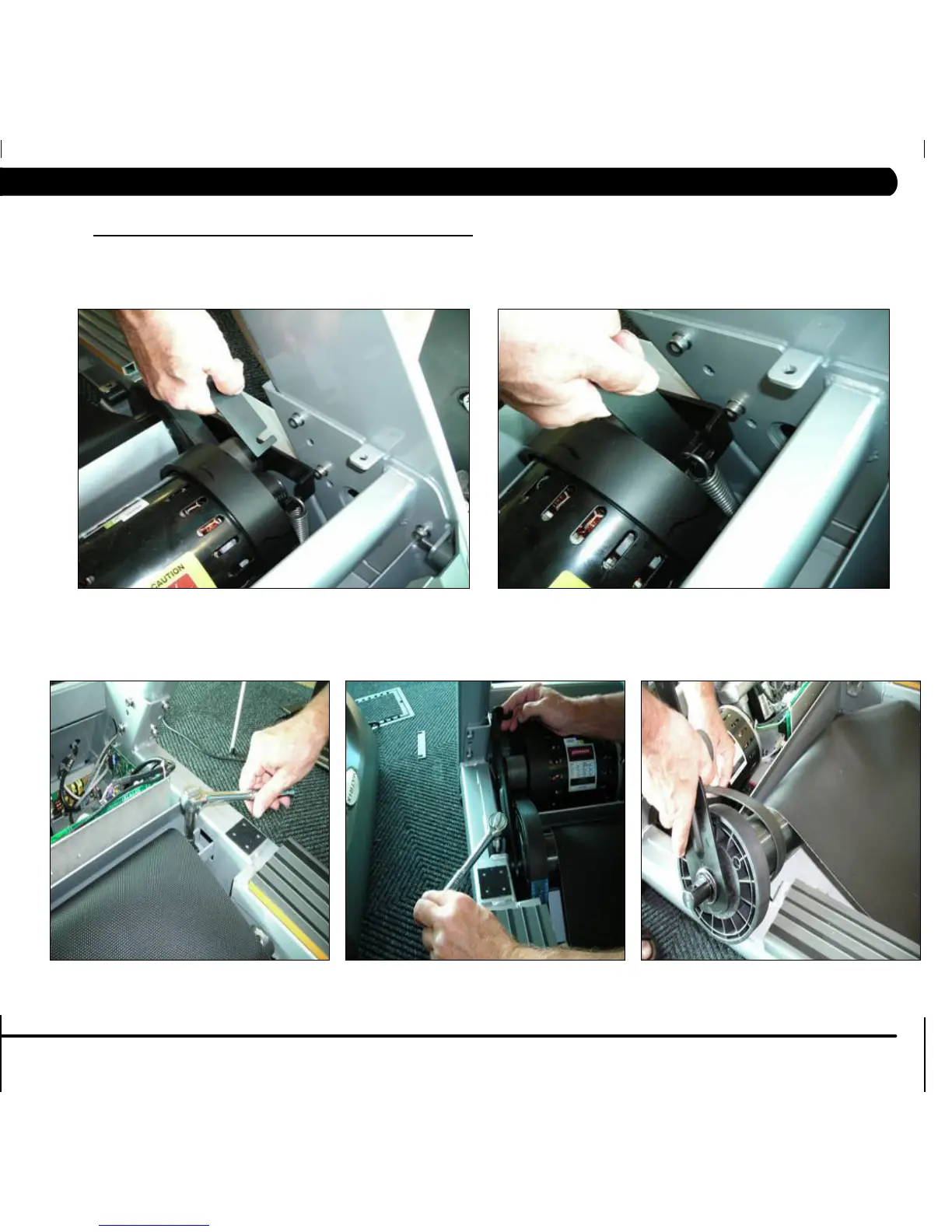 4) Remove the drive belt from the front roller and remove the roller from the running belt (Figure E).