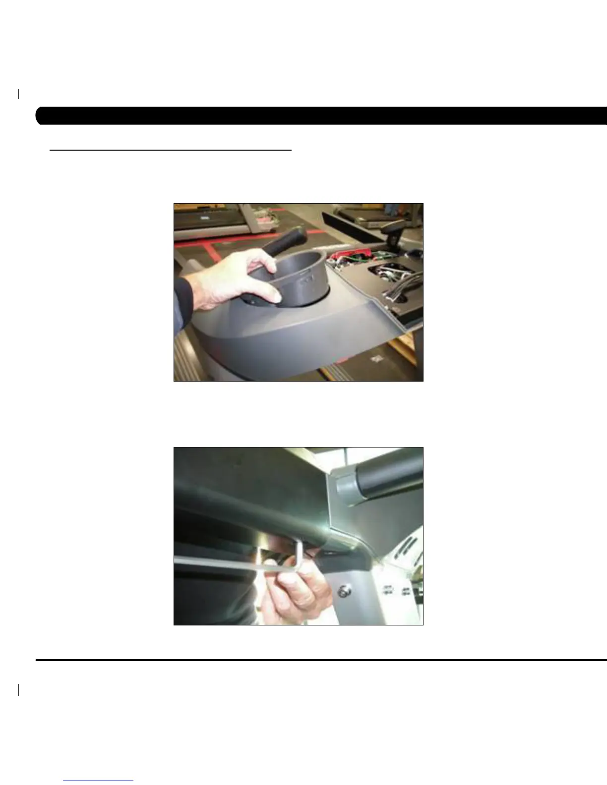 4) Use a 6 mm Allen wrench to remove one screw and take off the plastic hand rail (Figure B).