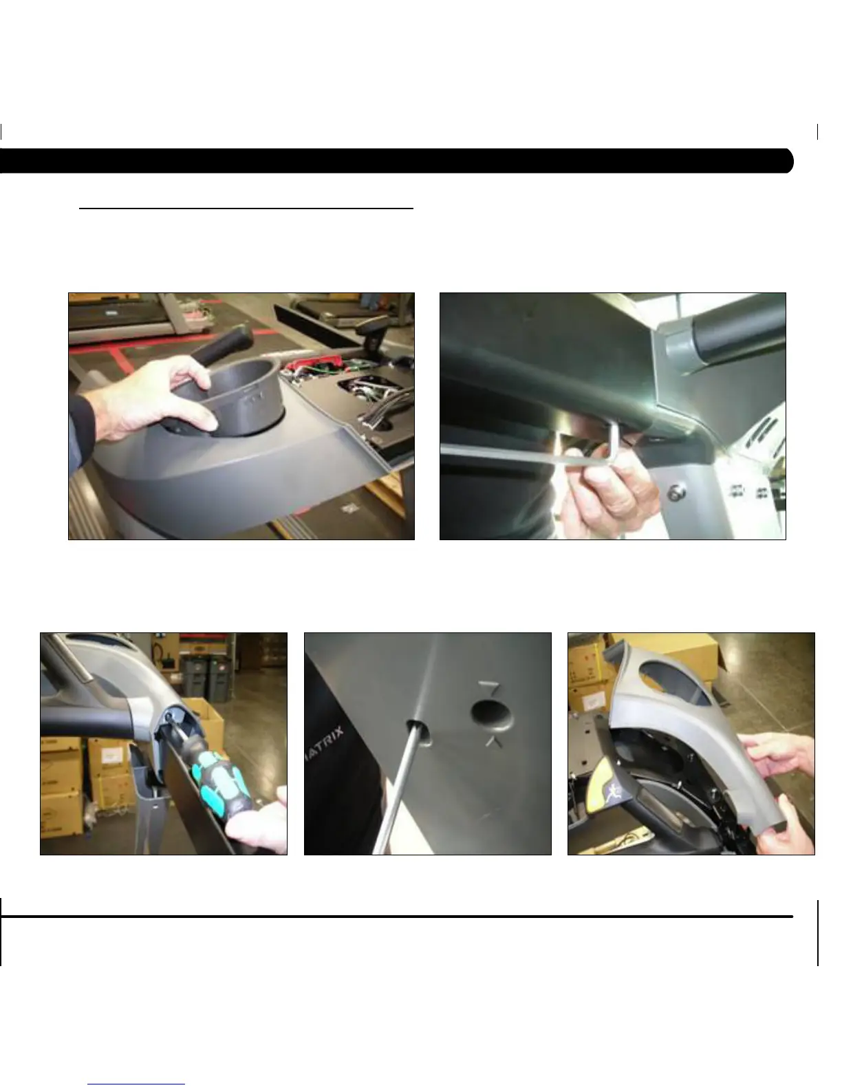 4) Use a 6 mm Allen wrench to remove one screw and take off the plastic hand rail (Figure B).
