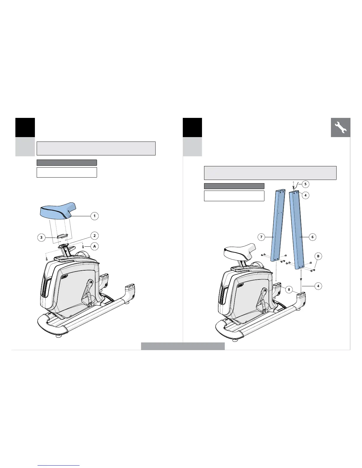 B Fixez la SELLE (1) à la TIGE DE LA SELLE (2) en utilisant le SUPPORT