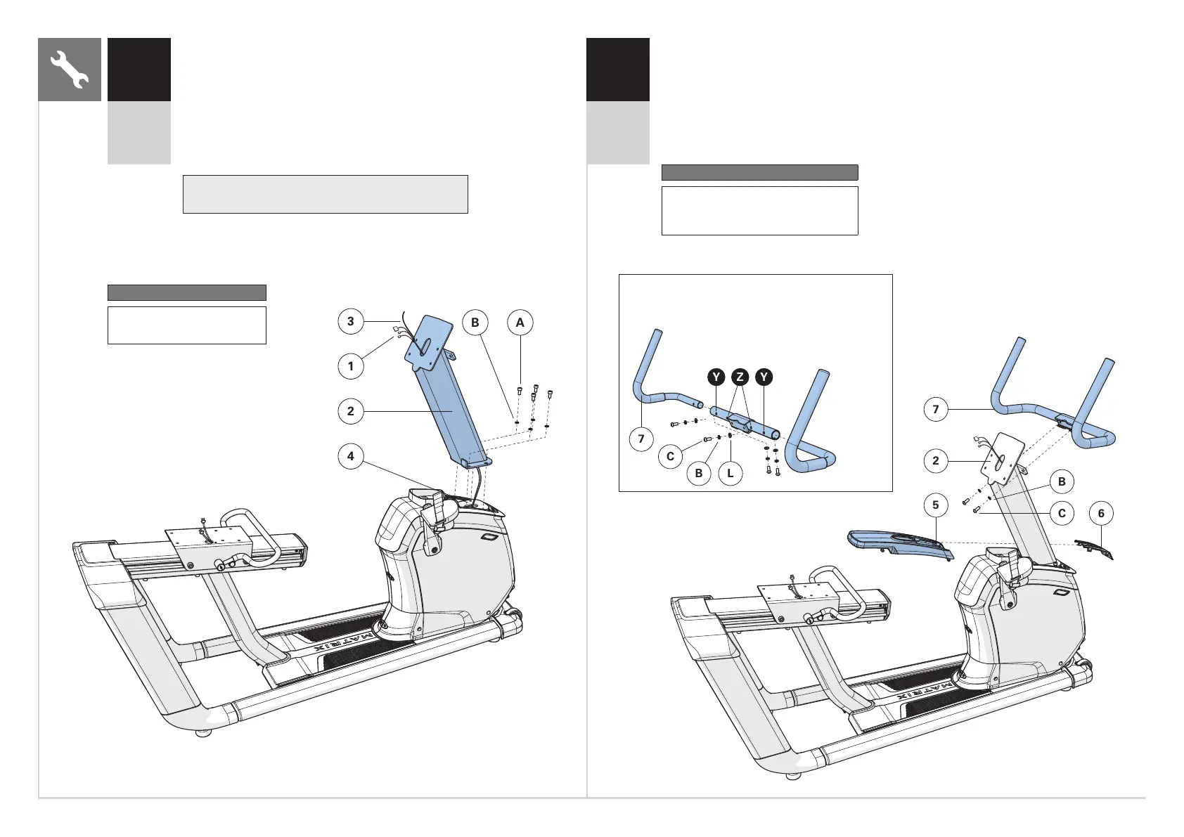 D Fixez les POIGNÉES DE GUIDON (7) au MÂT DE CONSOLE (2) à l'aide de 2BOULONS (C)