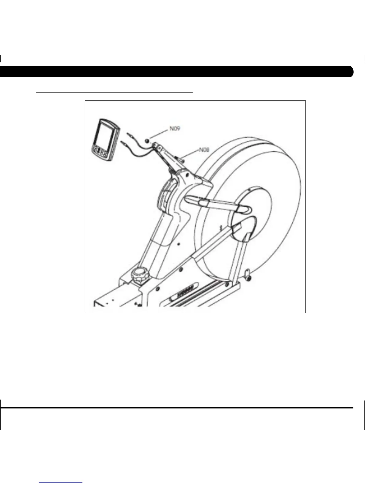 Plug the two console cables into the console. Secure the console to the console support using the screw (N08) and nylon nut (N09).