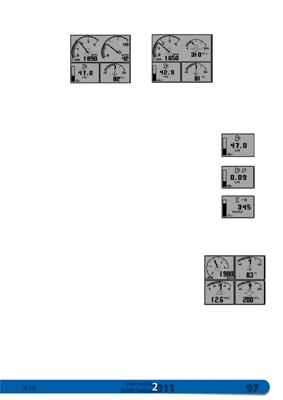 Themainscreendisplays2parametersatthetop:enginepowerontheleftandengineoilpressureontheright.