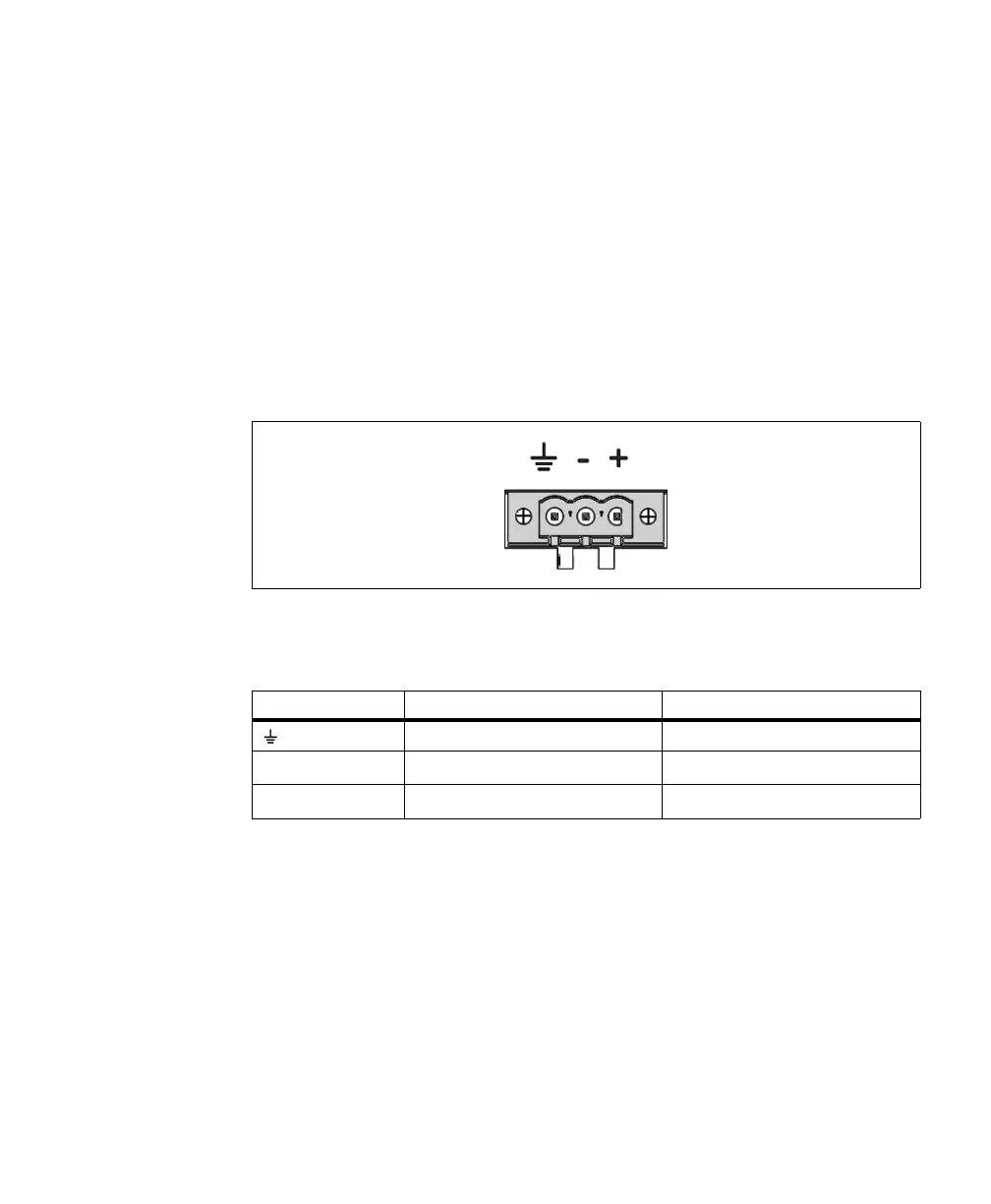 The DC power connector is a terminal-block connector. It is shown below with