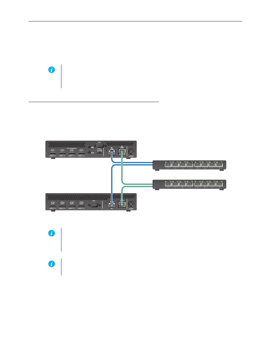Connect each Extio 3 transmitter and receiver unit to a managed network switch pair.