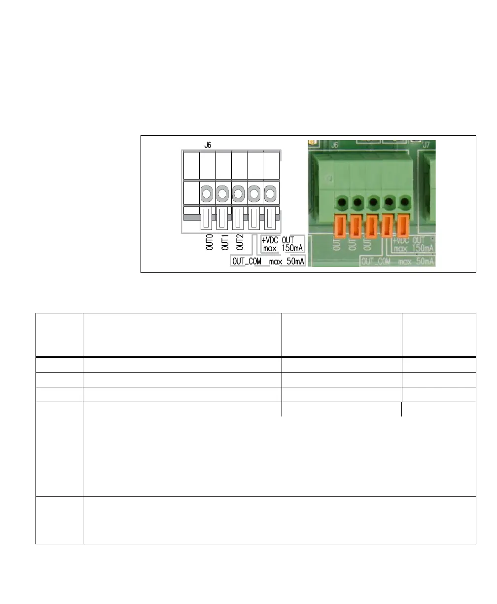 The pinout for the output connector (J6) is as follows: